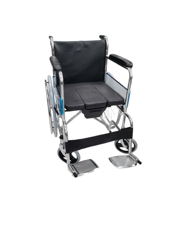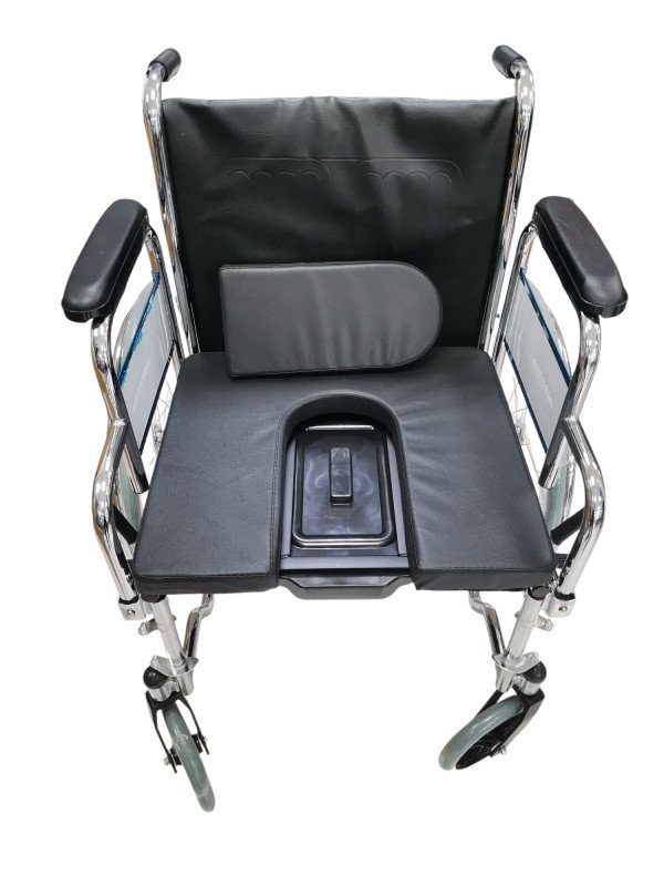 كرسي مع حمام بكفرات كبيرة لتوفير الدعم وسهولة الحركة.