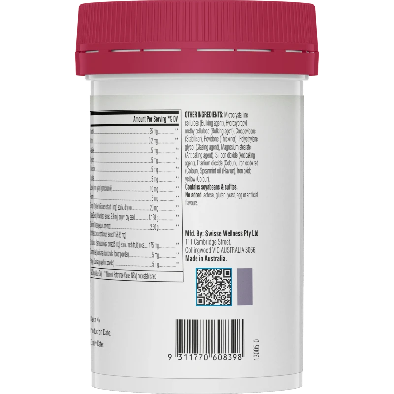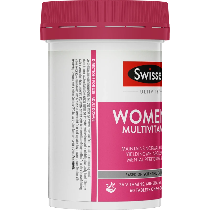 A tailored ally for women seeking to uphold a health-focused life, Swisse Ultivite Women's Multivitamin is formulated to provide a comprehensive blend of vitamins, minerals and herbs. This daily multivitamin maintains mental performance and contains Vitamin B12 to support energy production and Biotin to support hair health.