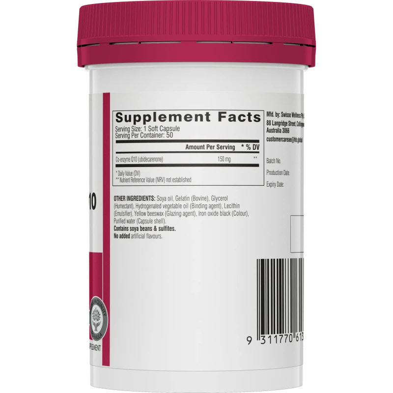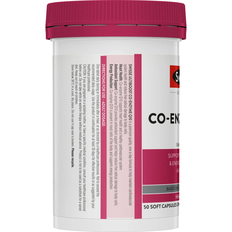 Embrace each day with heart health as your priority. Swisse Ultiboost Co Enzyme Q10, with its one-a-day formula, offers a key to supporting general health and wellbeing. Each capsule contains 150 mg of Co-enzyme Q10, providing antioxidant support, helping reduce free radicals formed in the body. It supports cardiovascular system health, heart health and energy production. Ideal for adults seeking to maintain their heart health, this supplement also aids in antioxidant support. Make Swisse Ultiboost Co Enzyme Q10 a part of your daily regimen and experience the support with energy production and overall wellbeing.