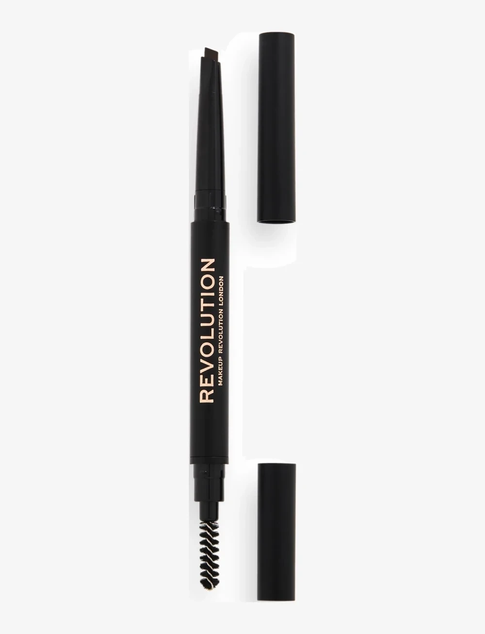 The Revolution Makeup Duo Brow Definer Pencil in Dark Brown is perfect for defining and shaping eyebrows. Its precise tip allows for easy application, creating natural-looking brows. Ideal for daily use, this pencil offers long-lasting wear and is suitable for all skin types. Key Features Dark brown shade Duo brow definer Includes crayon and brush Easy application Key Ingredients (Pencil): Waxes, Hydrogenated Vegetable Oils, Pigments, Emollients.Revolution Beauty: Innovators in affordable, high-quality makeup products.Apply To Brows Using Short, Light Strokes.For external use only. Avoid direct contact with eyes. If irritation occurs, discontinue use.