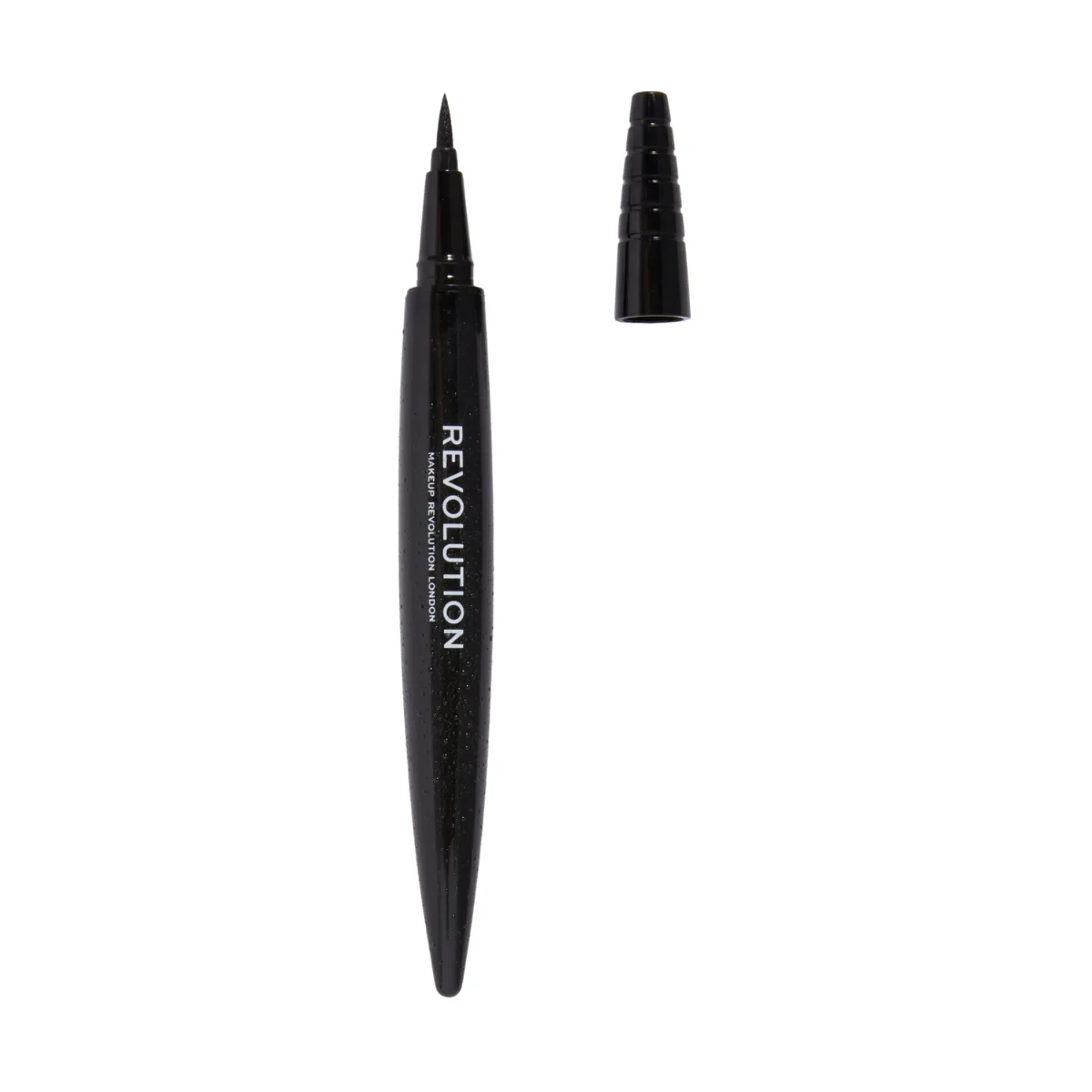Flick it, wing it, own it! The Revolution Waterproof Renaissance Eyeliner is long-wearing and smudgeproof with just one simple stroke. So rain or shine, your wonderful wing is staying put! How to use: For the ultimate flick, use our Revolution Cosmetic Tape to create a straight and steady line for the liner to flick on! Ingredients not fully specified, likely: Aqua, Acrylates Copolymer, Butylene Glycol, Carbon Black (CI 77266), Propylene Glycol, PEG-60 Hydrogenated Castor Oil, Phenoxyethanol (Waterproof formula uses specific polymers).Revolution Makeup Renaissance is a line of products. This is a liquid eyeliner with a waterproof formula.Draw a precise line along the upper lash line, starting from the inner corner and extending outward.For external use only. Discontinue use if eye irritation occurs.