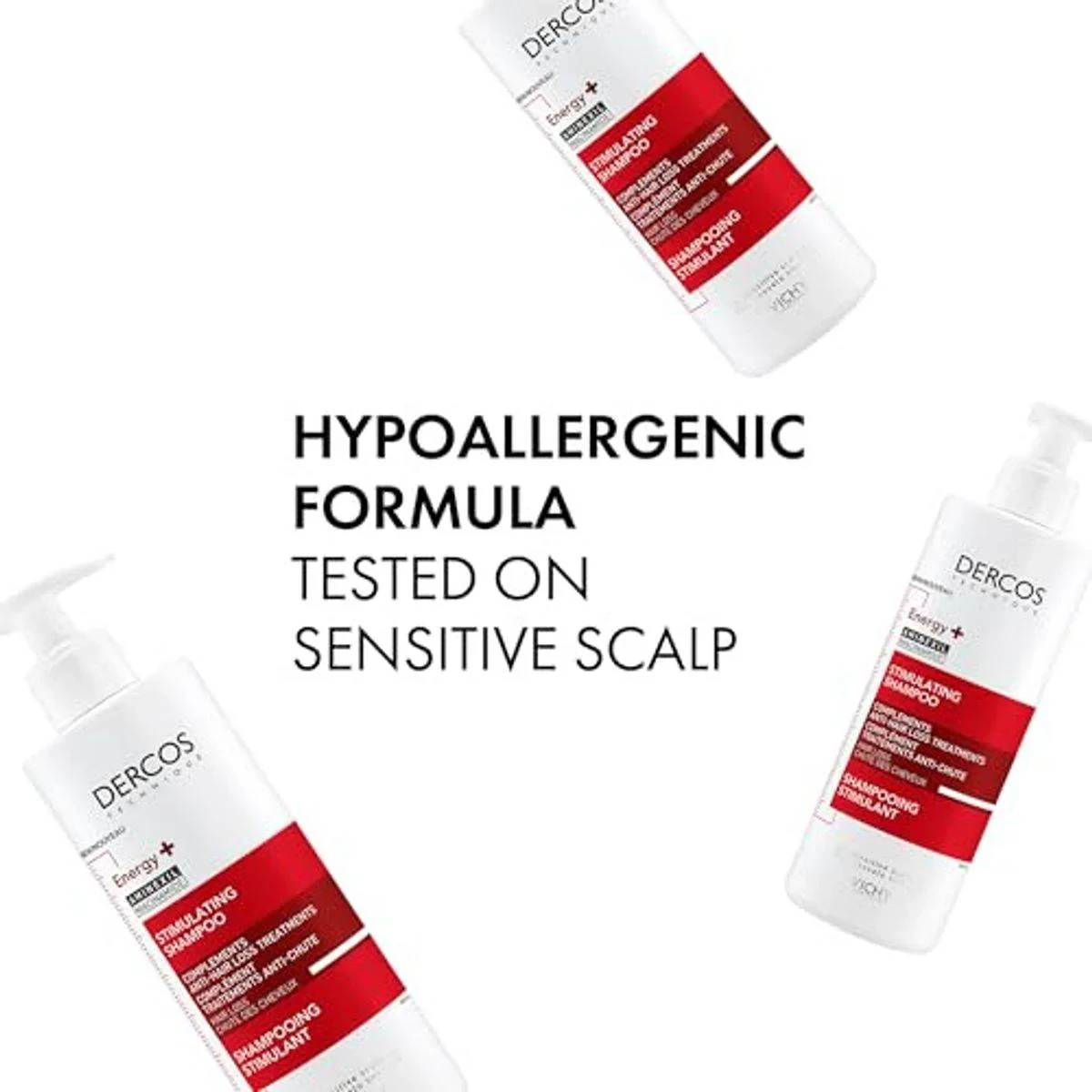 Vichy Dercos Energizing Stimulating Shampoo is designed to combat hair loss and strengthen hair. Enriched with Aminexil and Niacinamide, it revitalizes hair and boosts volume. Key Features Stimulating shampoo Complements anti-hair loss treatments Recommended by dermatologists Suitable for sensitive scalp Energy+, Aminexil, NiacinamideVichy: Dermatologist-recommended brand known for innovative skincare solutions.Apply To Wet Hair, Lather, And Rinse Thoroughly.For external use only. Avoid contact with eyes. Consult a dermatologist if hair loss persists.