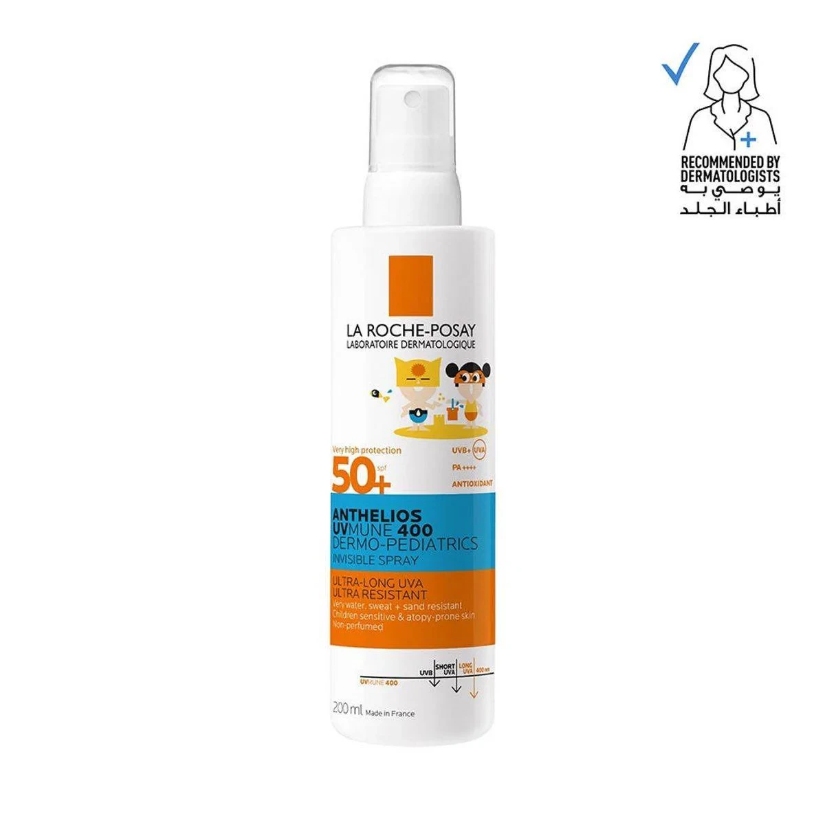 La Roche Posay Anthelios UVMune Dermo-Pediatrics Invisible Spray offers ultra-high sun protection with a non-greasy, invisible finish. Ideal for sensitive skin, it is water, sweat, and sand resistant. Formulated with antioxidants and La Roche-Posay Thermal Spring Water to soothe and protect.