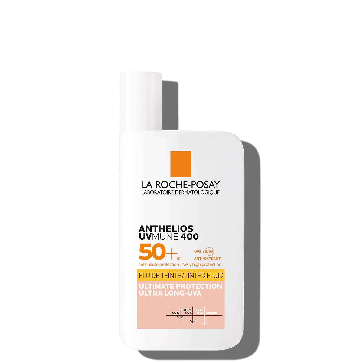 La Roche-Posay Anthelios UVMune 400 Tinted Fluid SPF50+ offers ultimate sun protection with MEXORYL400, guarding against ultra-long UVA rays. Suitable for all skin types, it is ultra-resistant to water and sweat, with a lightweight, non-sticky texture. Dermatologically tested, hypoallergenic, and anti-eye stinging. Features