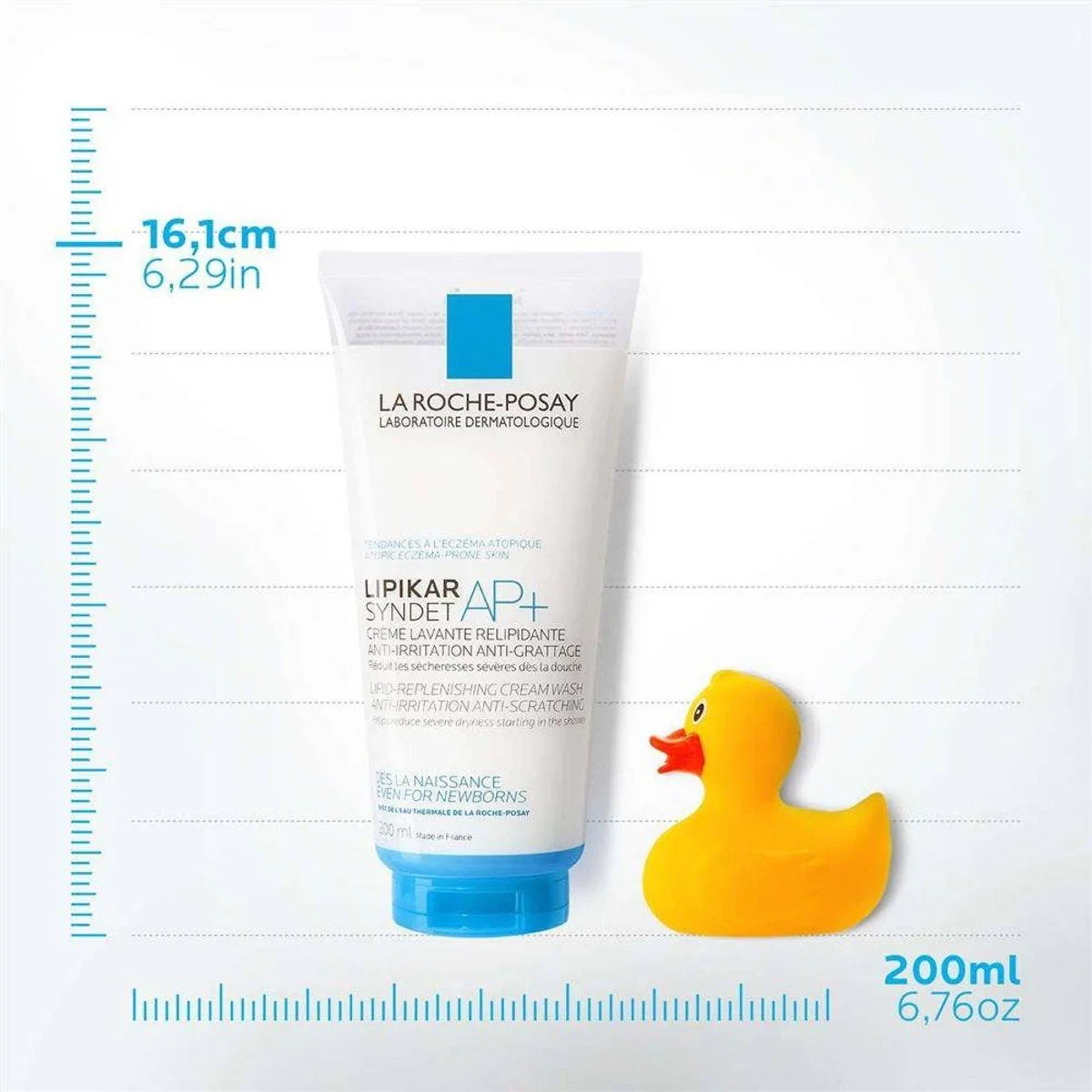 La Roche Posay Lipikar Syndet AP+ is a gentle cream wash designed for sensitive, eczema-prone skin. Enriched with Shea Butter and Niacinamide, it provides 24-hour hydration and reduces dryness. Suitable for all ages, including newborns. Key Features