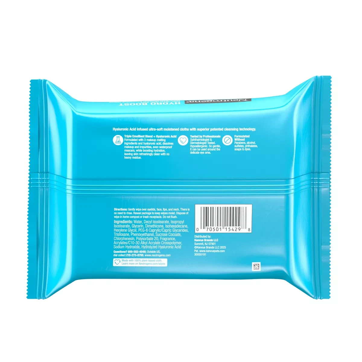 Water, Decyl Isostearate, Isopropyl Isostearate, Glycerin, Dimethicone, Isohexadecane, Hexylene Glycol, PEG-6 Caprylic/Capric Glycerides, Trisiloxane, Phenoxyethanol, Sucrose Cocoate, Chlorphenesin, Polysorbate 20, Fragrance, Acrylates/C10-30 Alkyl Acrylate Crosspolymer, Sodium Hydroxide, Hydrolyzed Hyaluronic Acid.Neutrogena: Dermatologist-recommended skincare brand known for effective and gentle cleansing products.Gently wipe over eyelids, face, lips, and neck. There is no need to rinse.Avoid contact with eyes, discontinue use if irritation occurs.