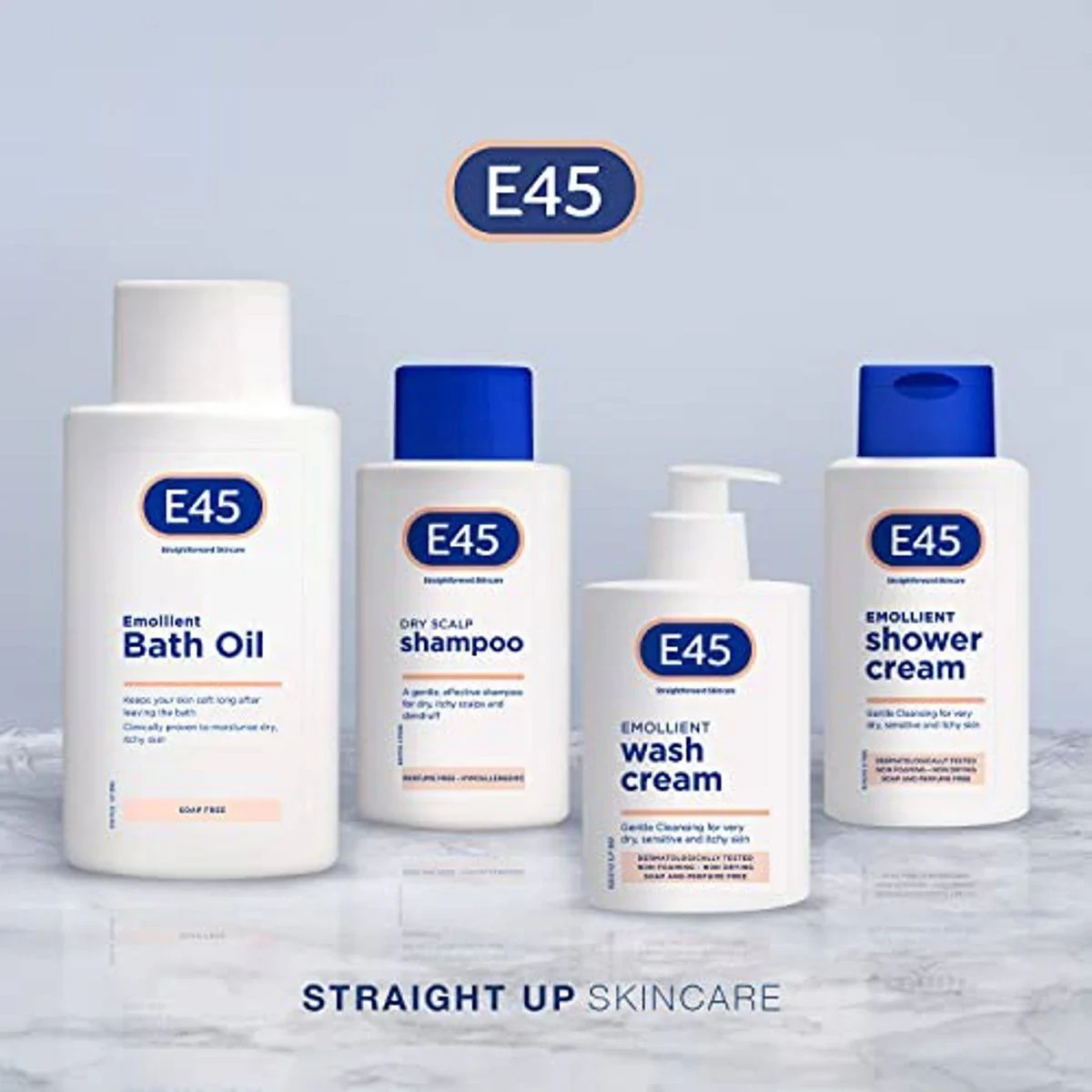 /ul Aqua, Sodium Myreth Sulfate, Coco-Glucoside, Laureth-6, Laureth-2, Glyceryl Oleate, Sodium Chloride, Glycol Distearate, Glycerin, Climbazole, Panthenol, Polyquaternium-10, Citric Acid, Potassium Sorbate, Sodium Acetate, Isopropyl Alcohol, Tocopherol, Hydrogenated Vegetable Glycerides Citrate.E45 is renowned for its dermatological skincare solutions, specializing in gentle, fragrance-free products for sensitive skin.Wet hair, apply shampoo to scalp, gently massage, leave on briefly, rinse thoroughly.Avoid contact with eyes; if contact occurs, rinse thoroughly with water.