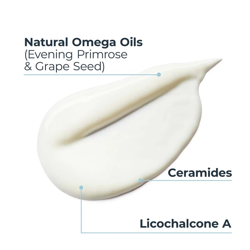 Aqua, Glycerin, Paraffinum Liquidum, Vitis Vinifera Seed Oil, Oenothera Biennis Oil, Octyldodecanol, PEG-7 Hydrogenated Castor Oil, Dimethicone, Glycyrrhiza Inflata Root Extract, Ceramide NP, Tocopherol, Ozokerite, Sorbitan Isostearate, Methoxy PEG-22-Dodecyl Glycol Copolymer, PEG-45 Dodecyl Glycol Copolymer, PEG-2 Hydrogenated Castor Oil, Hydrogenated Castor Oil, Ascorbyl Palmitate, Citric Acid, Sodium Citrate, Magnesium Sulfate, BHT, 1,2-Hexanediol, Phenoxyethanol, Potassium Sorbate.
