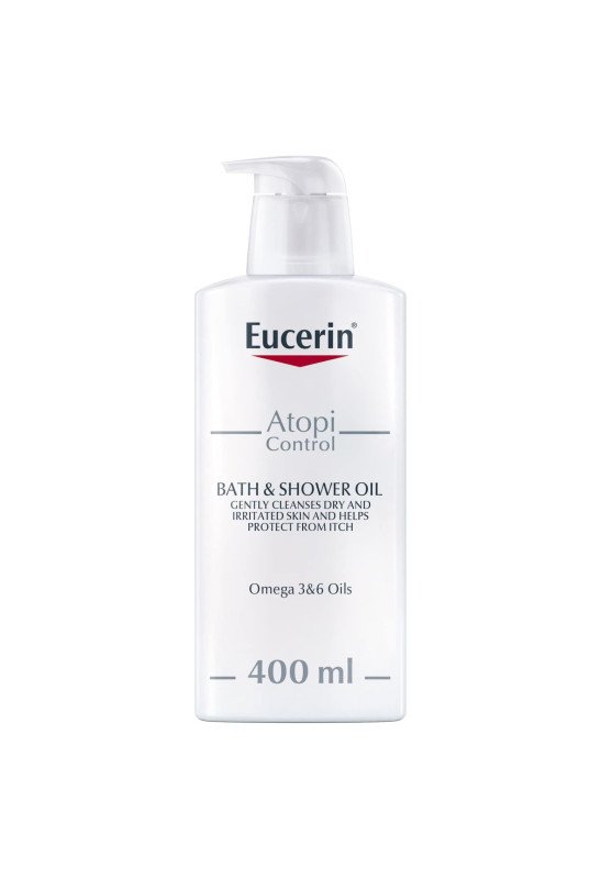 A gentle, daily-use bath and shower oil for the very dry, irritated, and itchy skin associated with Atopic Dermatitis. It cleanses without stripping the skin's moisture barrier. Features: 50% Omega Oils (Soybean and Castor Oil) to nourish the skin. Soap-Free, Fragrance-Free, Colourant-Free to minimize irritation. Relieves itching and helps restore the skin barrier. Suitable for adults, children, and babies (>3 months). Glycine Soja (Soybean) Oil, Laureth-4, Laureth-9, BHT.Eucerin is a German dermo-cosmetic brand (owned by Beiersdorf). AtopiControl is a line specifically for soothing and managing dry, irritated, or atopic-prone skin.For adults and children 3+ months: Apply to wet skin. Massage gently and rinse thoroughly. For babies, use only as an additional product to the bath. Gently pat dry (do not rub).For external use only. Avoid contact with eyes. Use caution as surfaces may become slippery after use.