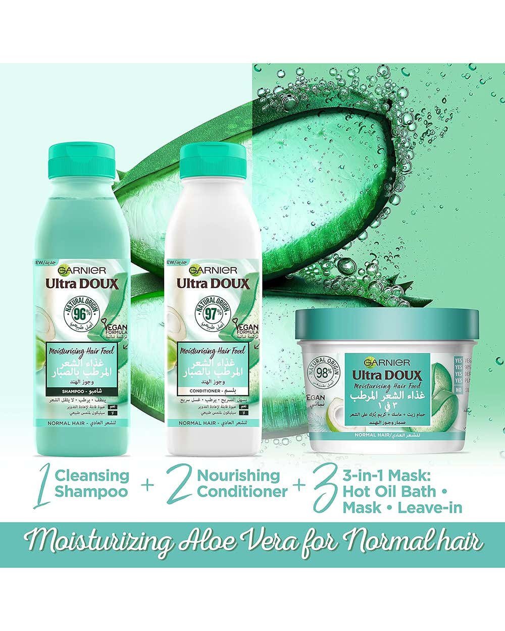 Garnier Ultra Doux Hair Food Aloe Vera Conditioner is designed for normal hair, providing deep hydration and nourishment with a blend of aloe vera and coconut. Its vegan formula ensures a natural feel, leaving hair soft, shiny, and manageable. Key Features