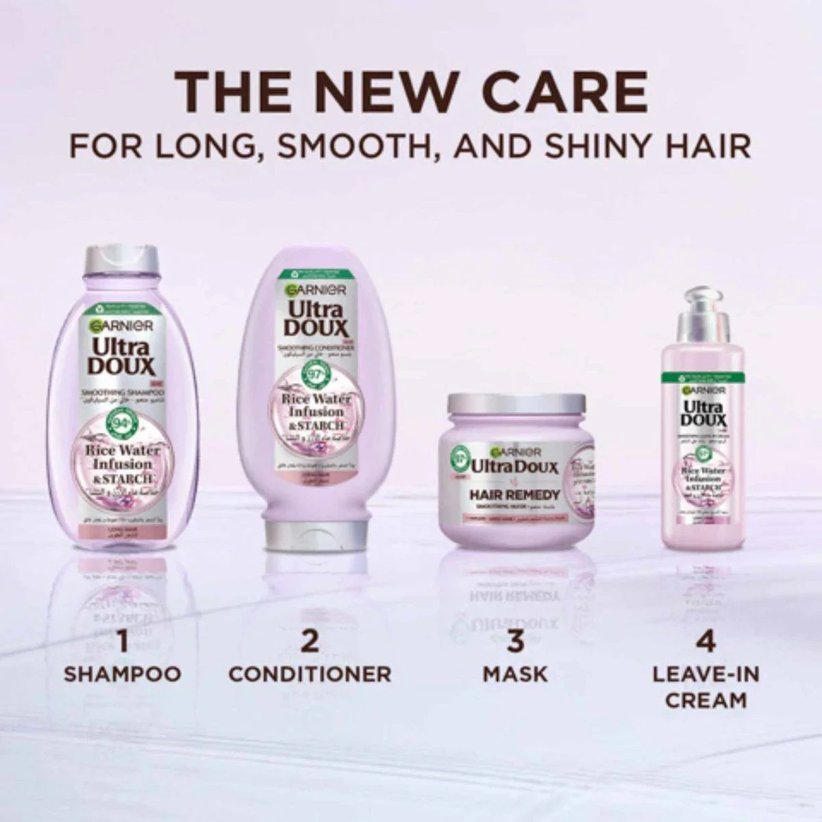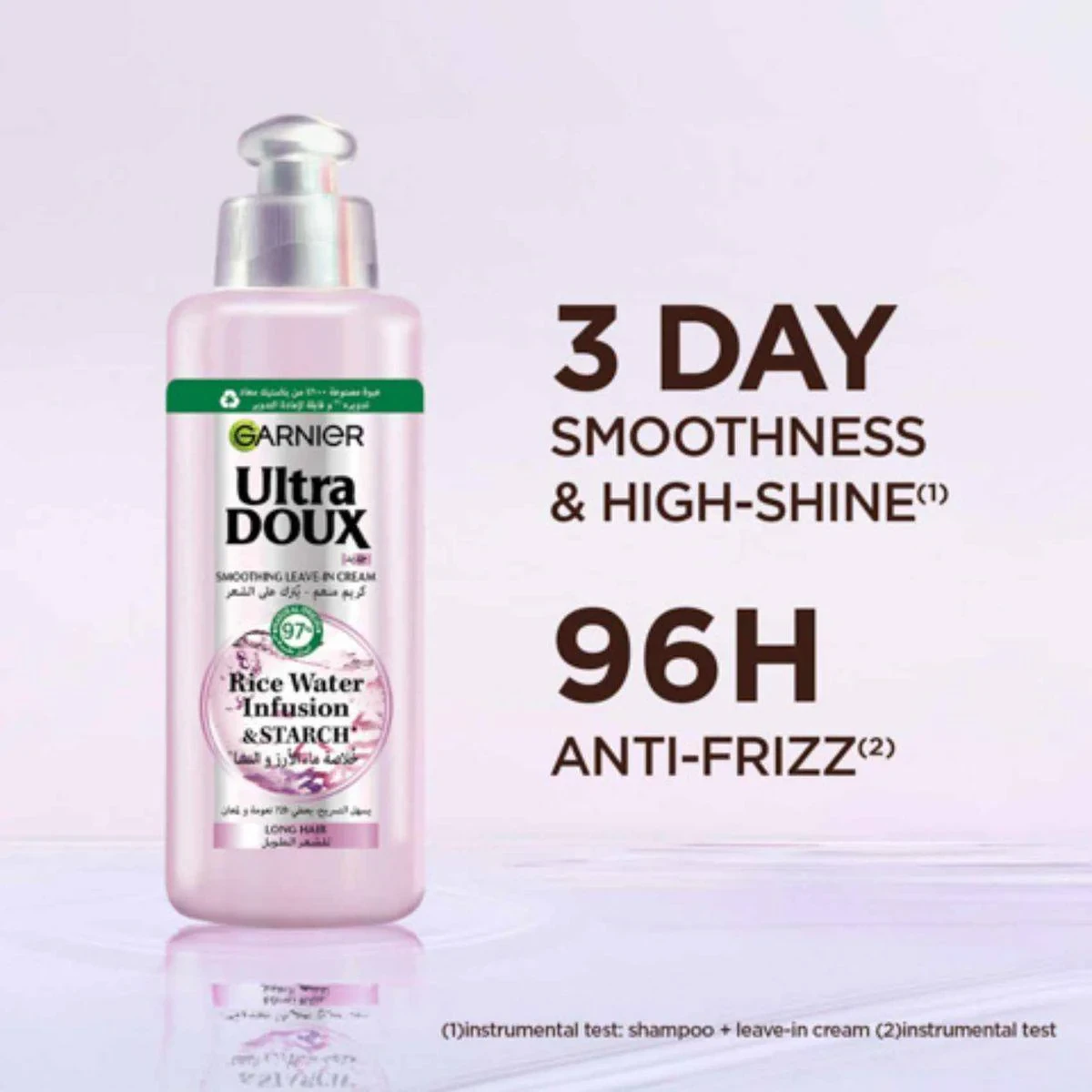 Garnier Ultra Doux Rice Water Leave In Cream is designed for long hair, enriched with rice water and starch to lock in hydration and provide up to 72 hours of shine. Ideal for smooth, shiny hair without weighing it down. Enriched with Rice Water & Starch Retains and locks in hydration Provides up to 72 hours of high shine 97% natural origin ingredients No silicone or artificial colorants Suitable for dry hair types Easy to style Lightweight, no-rinse formula Aqua/Water, Oryza Sativa (Rice) Water, Starch, Cetearyl Alcohol, Behentrimonium Chloride, Dimethicone, Isopropyl Myristate, Phenoxyethanol, Fragrance (Parfum), Glycerin, Hydroxyethylcellulose, Lactic Acid, Caprylyl Glycol, Hexyl Cinnamal, Limonene, Linalool, Citric Acid, Sodium Benzoate.Garnier: Experts in hair care, known for innovative products with natural ingredients.Apply on wet or dry hair. Spread evenly from mid-lengths to ends. No need to rinse.For external use only. Keep out of reach of children.