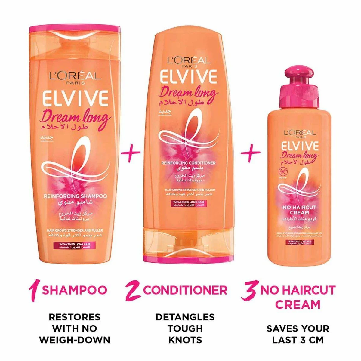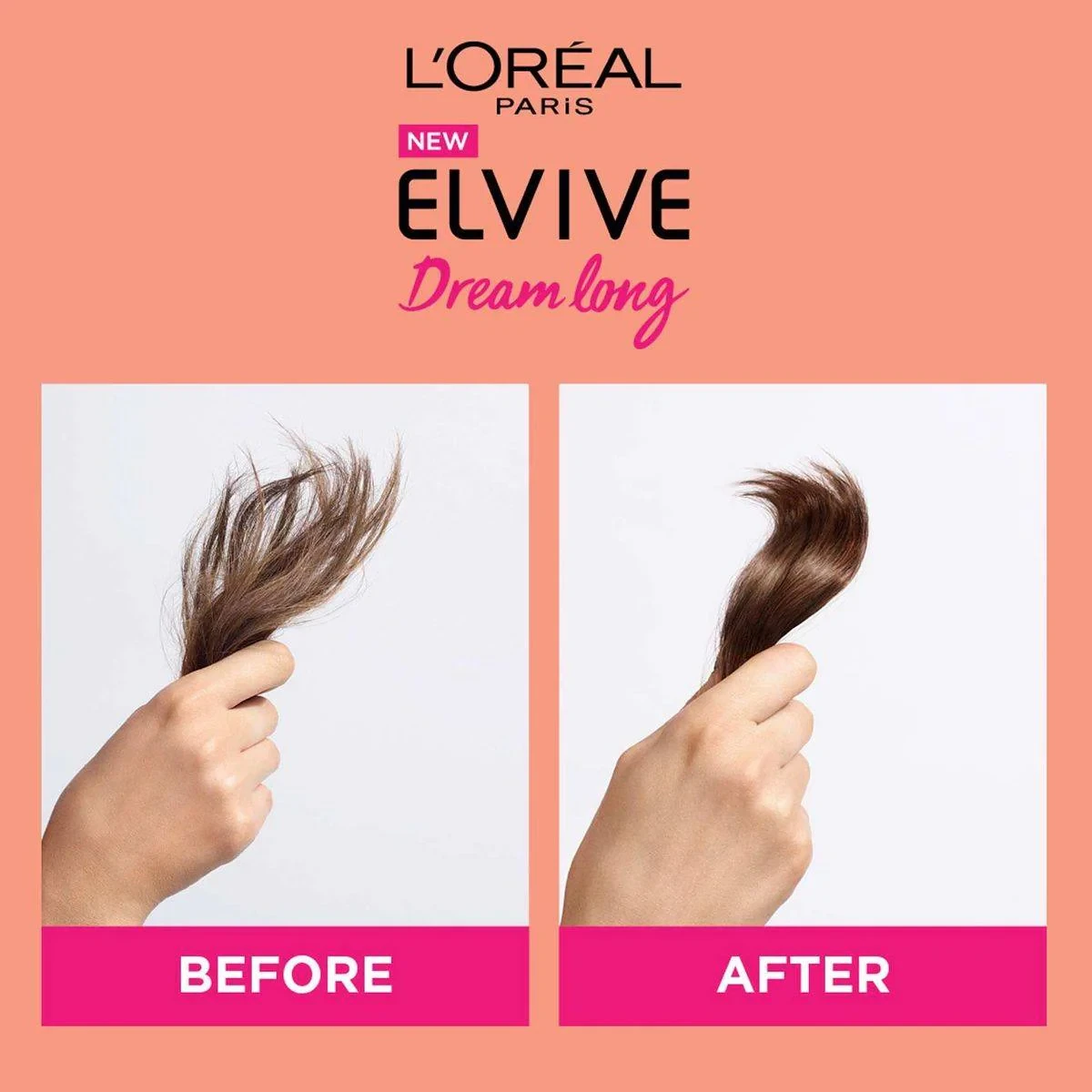 L'Oreal Paris Elvive Dream Long Shampoo is designed for weakened long hair. Enriched with castor oil and vegetal proteins, it strengthens hair, seals split ends, and promotes fuller, healthier growth. Key Features Strengthens long hair Seals split ends Formulated with castor oil and vegetal proteins Suitable for weakened long hair Restorative creamy formula Promotes fuller, healthier hair growth Protects hair lengths Unscented Aqua / water, sodium laureth sulfate, glycerin, dimethicone, coco-betaine, sodium chloride, glycol distearate, guar hydroxypropyltrimonium chloride, niacinamide, cocamide MIPA, ricinus communis seed oil / castor seed oil, sodium benzoate, sodium hydroxide, hydroxycitronellal, hydrolyzed wheat protein, hydrolyzed corn protein, hydrolyzed soy protein, phenoxyethanol, salicylic acid, limonene, fumaric acid, benzyl salicylate, linalool, benzyl alcohol, panthenol, alpha-isomethyl ionone, carbomer, citric acid, citronellol, coumarin, hexylene glycol, hexyl cinnamal, parfum / fragrance.L'Oréal Paris: Global leader in beauty, offering innovative hair care, skincare, and makeup solutions.Apply on wet hair, massage to help stimulate the scalp, then rinse thoroughly.Avoid contact with eyes. If contact occurs, rinse immediately.