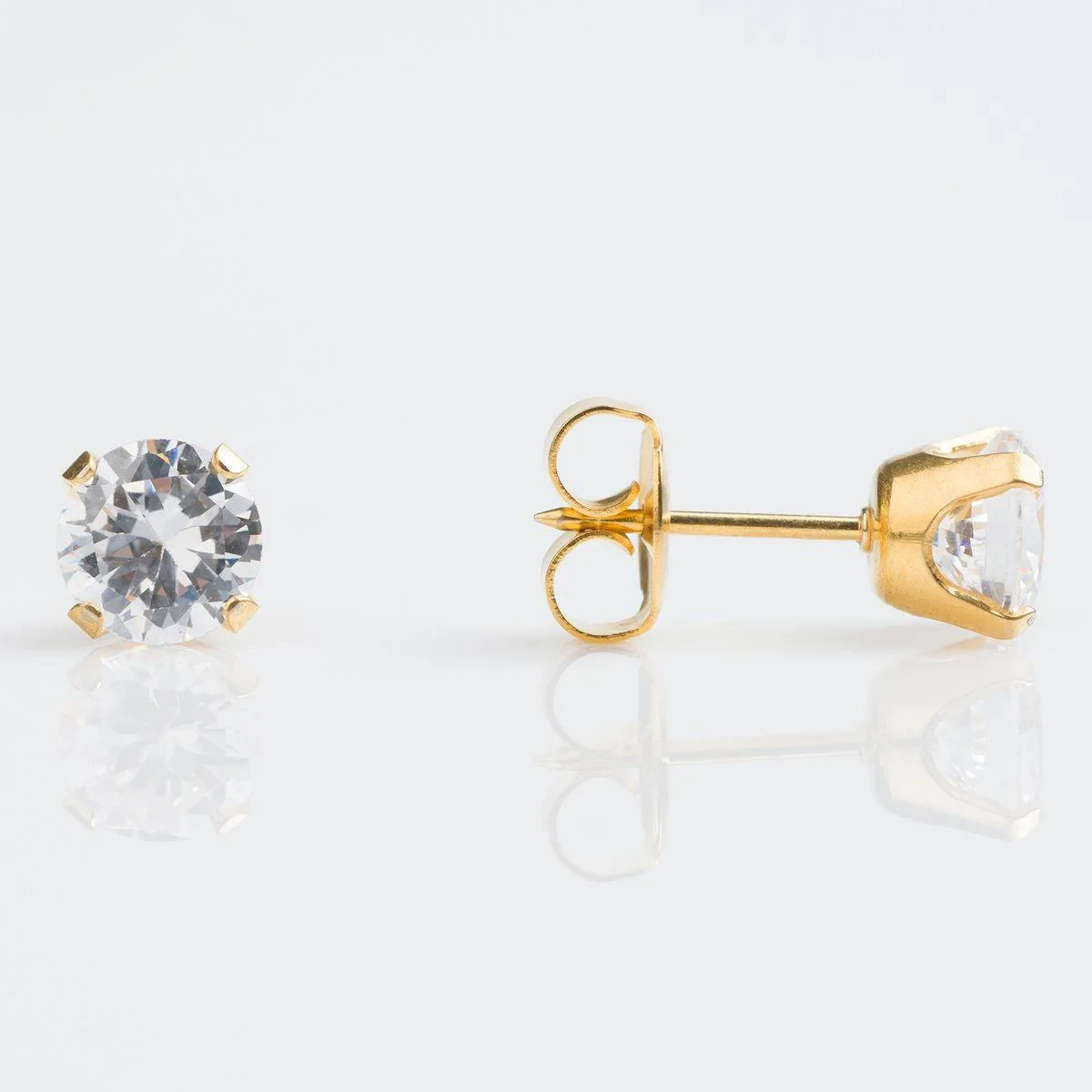 Studex Gold Plated Tiffany 6mm Cubic Zirconia