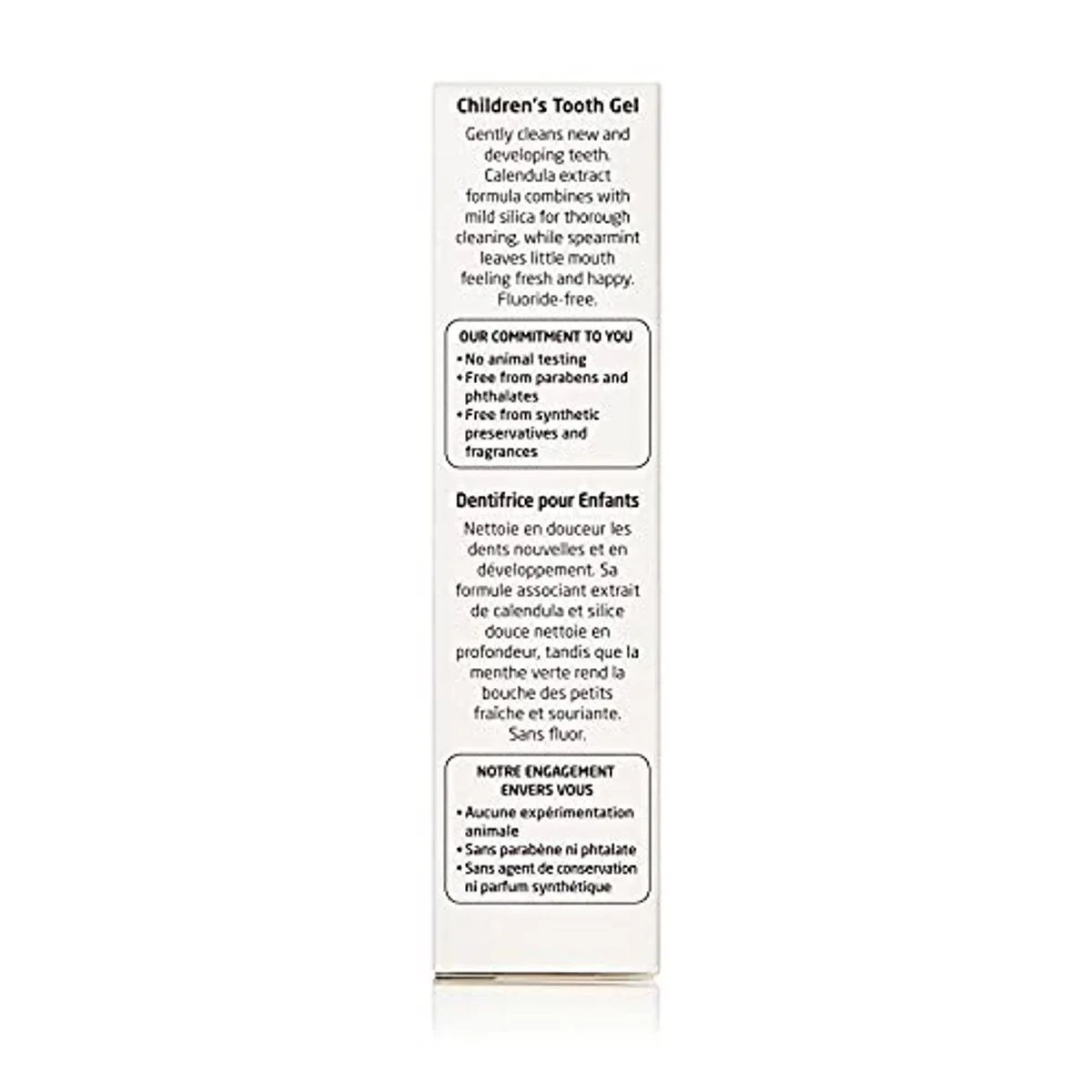 Weleda Children's Tooth Gel is a fluoride-free toothpaste designed for infants and young children. It features natural ingredients like calendula and silica for gentle cleaning. The spearmint flavor leaves a refreshing taste, making it ideal for developing good oral hygiene habits. Key Features Fluoride-free Spearmint flavor Contains organic calendula flower extract Gently cleans new and developing teeth Safe if swallowed Free from synthetic preservatives and fragrances No animal testing Contains natural flavors of fennel and spearmint Glycerin, Water (Aqua), Silica, Algin, Calendula Officinalis Flower Extract, Prunus Amygdalus Dulcis (Sweet Almond) Oil, Esculin, Flavor (Aroma)*, Limonene*.Weleda is renowned for its natural and sustainable personal care products, offering gentle solutions for all ages.Brush teeth with the gel twice daily. Apply a pea-sized amount to a soft toothbrush and gently brush using circular motions.Consult a healthcare professional before use.