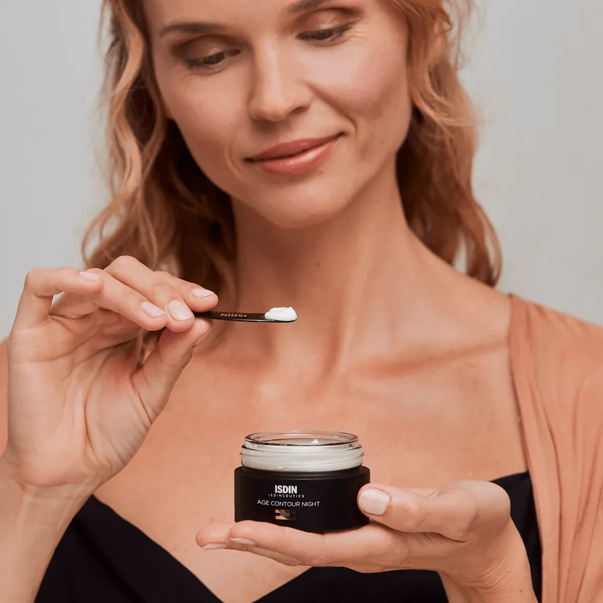Aqua (Water), Glycerin, Propanediol, Niacinamide, Betaine, Olus Oil (Vegetable Oil), Caprylic/Capric Triglyceride, Silica, Dimethicone, Hydrogenated Polyisobutene, Isodecyl Neopentanoate, Octyldodecanol, Stearyl Alcohol, Dipentaerythrityl Hexacaprylate/Hexacaprate, Tridecyl Trimellitate, Alcohol Denat., Butylene Glycol, Phenylpropanol, Ammonium Acryloyldimethyltaurate/Vp Copolymer, Panthenol, Tocopheryl Acetate, Acrylates/C10 30 Alkyl Acrylate Crosspolymer, Caprylyl Glycol, Tridecyl Stearate, Carnosine, Parfum (Fragrance), Neopentyl Glycol Dicaprylate/Dicaprate, Melatonin, Cetyl Alcohol, Glyceryl Stearate, Pentylene Glycol, Sodium Hyaluronate Crosspolymer, Disodium Edta, Peg 75 Stearate, Peg 8, Carbomer, Polysorbate 20, Sodium Lactate, Ceteth 20, Steareth 20, Tetradecyl Aminobutyroylvalylaminobutyric Urea Trifluoroacetate, Tocopherol, Ascorbyl Palmitate, Magnesium Chloride, Helichrysum Italicum Extract, Ascorbic Acid, Citric Acid, Palmitoyl Tripeptide 1, Palmitoyl Tetrapeptide 7, Ci 15985 (Yellow 6), Ci 19140 (Yellow 5).Isdin: Pioneers in dermatological solutions, offering advanced skincare products that combine science and aesthetics.Apply at night on clean, dry skin of face and neck; massage until completely absorbed.External Use. Keep Out Of Reach Of Children. Avoid Contact With Eyes And Mucous Membranes. Do Not Use On Irritated Skin.