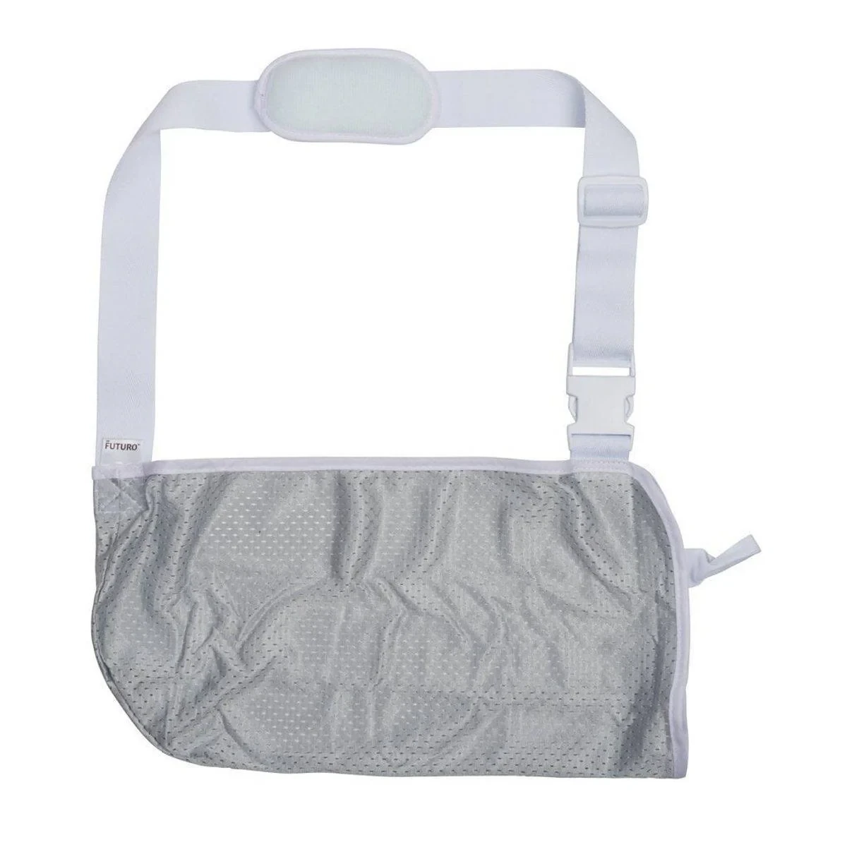 The FUTURO Adult Pouch Arm Sling is designed for optimal arm positioning during recovery. It features an adjustable, padded shoulder strap and a cradling pouch for a comfortable fit. Made from breathable materials, it helps keep the skin dry and includes a comfort pad to cushion the shoulder. Ideal for sprains and post-surgery recovery. Key Features Provides mild support for sprains and post-surgery recovery Cradle design reduces fatigue by taking weight off the arm Breathable materials help keep skin dry Comfort pad cushions the shoulder bone and muscles One-hand, quick-release sleeve for easy on and off Customizable strap for personalized comfort Can be worn on either arm Adjustable size, color: gray Key Materials: Durable fabric pouch (Polyester/Cotton), Wide foam shoulder strap, Hook-and-loop adjustment system.Futuro specializes in providing innovative support solutions for recovery and comfort.Unfasten the shoulder strap and insert the arm into the pouch. Bring the strap across the back and secure it in the buckle closure. The arm should rest horizontally. Position Comfort Pad over the shoulder. To remove, slip the strap over the head without unbuckling.Keep out of reach of children.
