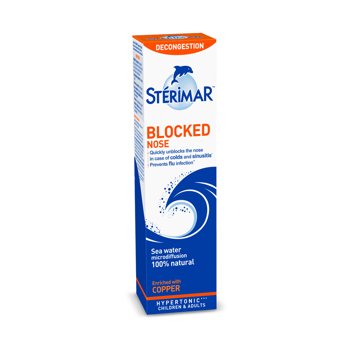 Sterimar Blocked Nose 100ml is a hypertonic sea water solution designed to relieve nasal congestion and prevent flu infections. Enriched with copper, it helps cleanse nasal passages and improve breathing. Suitable for children from 3 years and adults, it is gentle, steroid-free, and preservative-free. Ideal for those who cannot use medication. Key Features Relieves nasal congestion 100% natural seawater solution Enriched with copper Suitable for children from 3 years Preservative-free Helps prevent flu infections Improves breathing Sea Water, Copper Salt, Manganese Salt, Purified Water.Sterimar: Natural nasal sprays enriched with sea minerals for effective congestion relief and respiratory health.Use 2 to 4 times a day in each nostril for 10 to 15 days.