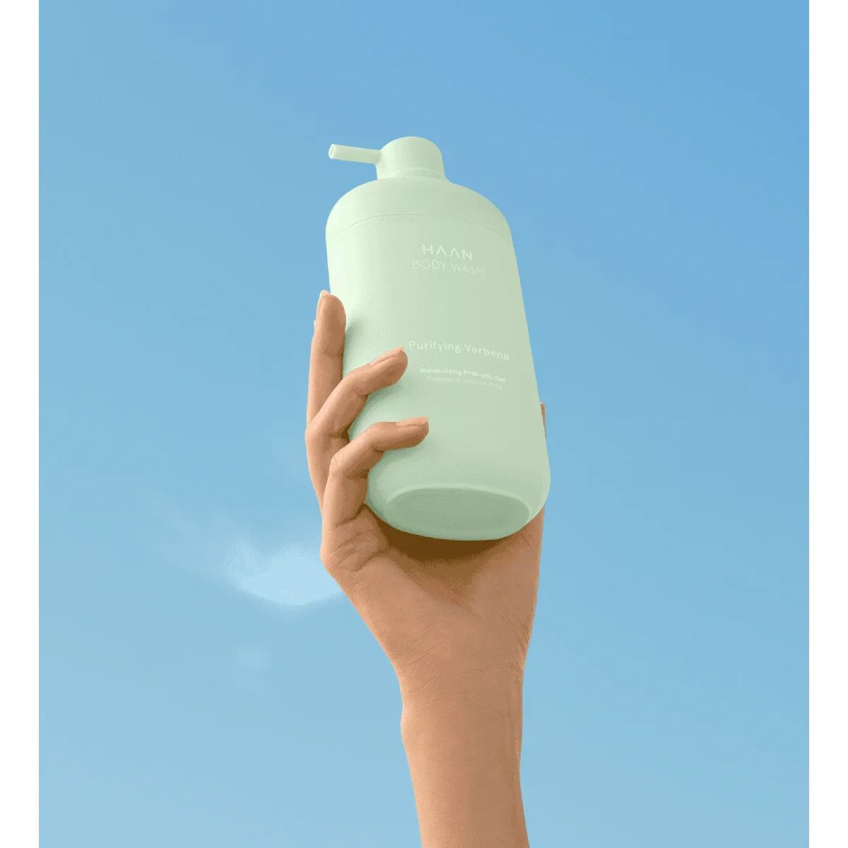 Haan Body Wash Purifying Verbena is a refreshing body wash designed to restore your skin's natural pH levels while gently cleansing. Formulated with a prebiotic complex and 87% natural ingredients, including Aloe Vera, it refreshes, replenishes, and moisturizes your body. The citrus, floral, and wood fragrance revives body and mind, making it ideal for daily use. Eco-friendly and vegan, it comes in a refillable and recyclable container. Key Features