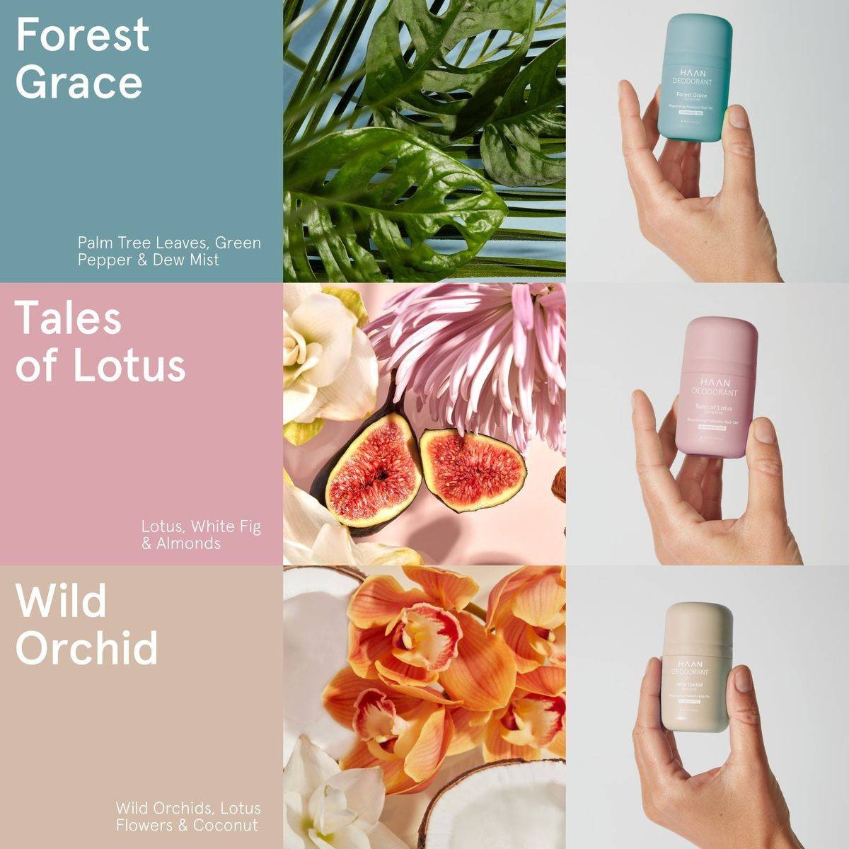 Aqua (Water), Alcohol Denat, Triethyl Citrate, Glycerin, Tapioca Starch, Caprylic/Capric Triglyceride, Steareth 21, Steareth 2, Cetyl Alcohol, Inulin, Parfum (Fragrance), Acacia Senegal Gum, Menthyl Lactate, Caprylyl Glycol, Ethylhexylglycerin, Xanthan Gum, Sodium Caproyl/Lauroyl Lactylate, 2 Methyl 5 Cyclohexylpentanol, Xylityl Sesquicaprylate, Benzyl Alcohol, Disodium Edta, Fructose, Benzoic Acid, Anhydroxylitol, Polymethylsilsesquioxane, Linalool, Sorbic Acid, Hexyl Cinnamal, Benzyl Salicylate, Alpha Isomethyl Ionene, Salvia Officinalis (Sage) Oil, Eugenol.Haan: Innovators in sustainable personal care, offering eco friendly deodorants and skincare solutions.Apply on clean and dry skin, covering the entire armpit. Leave to dry before putting clothes on.For External Use Only. Stop Use If Irritation Occurs. Keep Out Of Reach Of Children.
