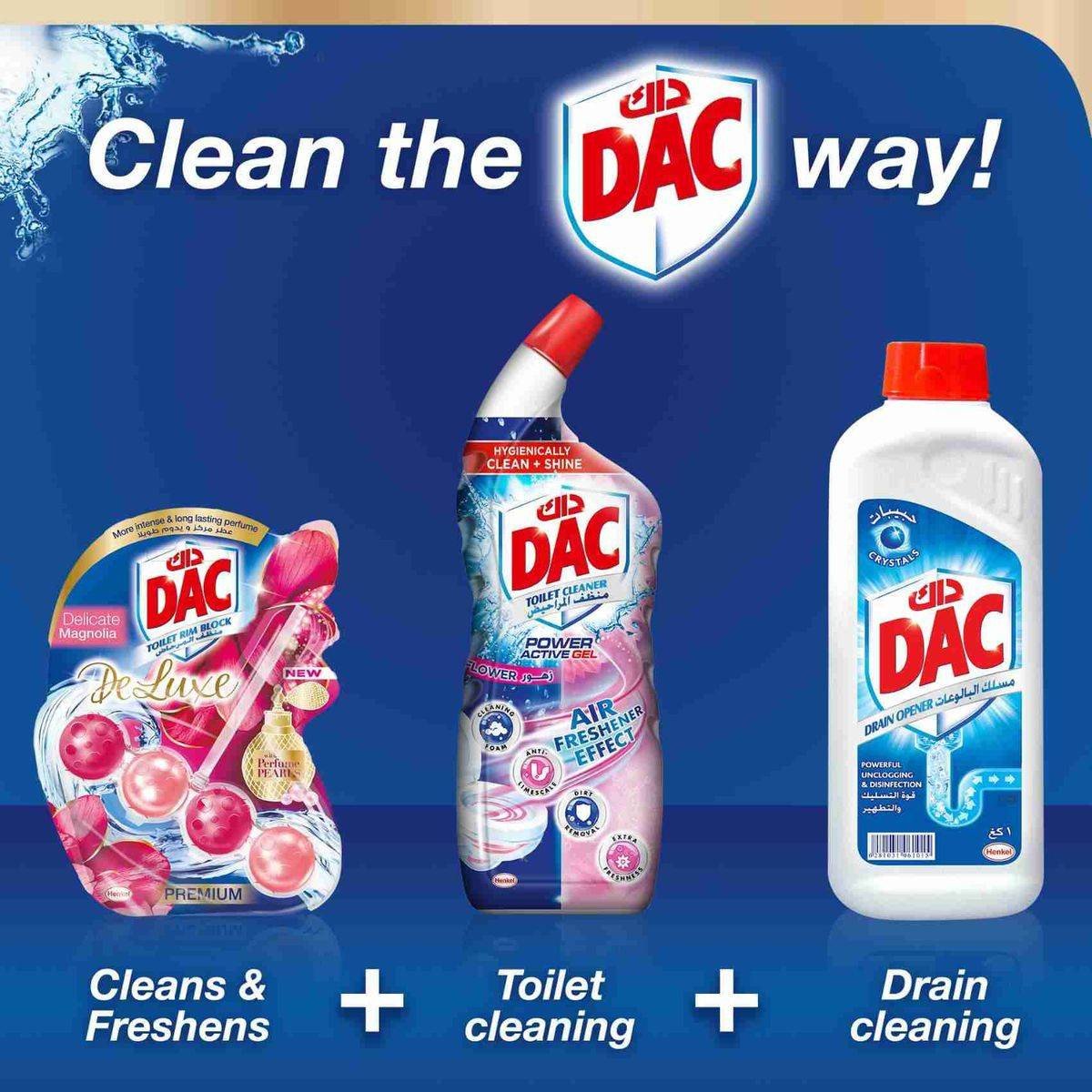 Dac Toilet Rim Block Deluxe Magnolia 50g offers a unique and elegant fragrance inspired by top perfumes. It includes active cleaning foam that ensures the toilet is germ-free with every flush and provides dirt protection against re-soiling, limescale, and new dirt formation. The design is discrete and fits well into any bathroom. More intense & long-lasting perfume With Perfume Pearls Hygienically clean & shine Recyclable carton and basket 30% Anionic Surfactants, 5-15% Non-Ionic Surfactants, Perfumes, Other Compounds.Dac Toilet Rim Block Deluxe Magnolia 50g offers a unique and elegant fragrance inspired by top perfumes. It includes active cleaning foam that ensures the toilet is germ-free with every flush and provides dirt protection against re-soiling, limescale, and new dirt formation. The design is discrete and fits well into any bathroom.Refer To Label For Instructions.Keep Out Of Reach Of Children.