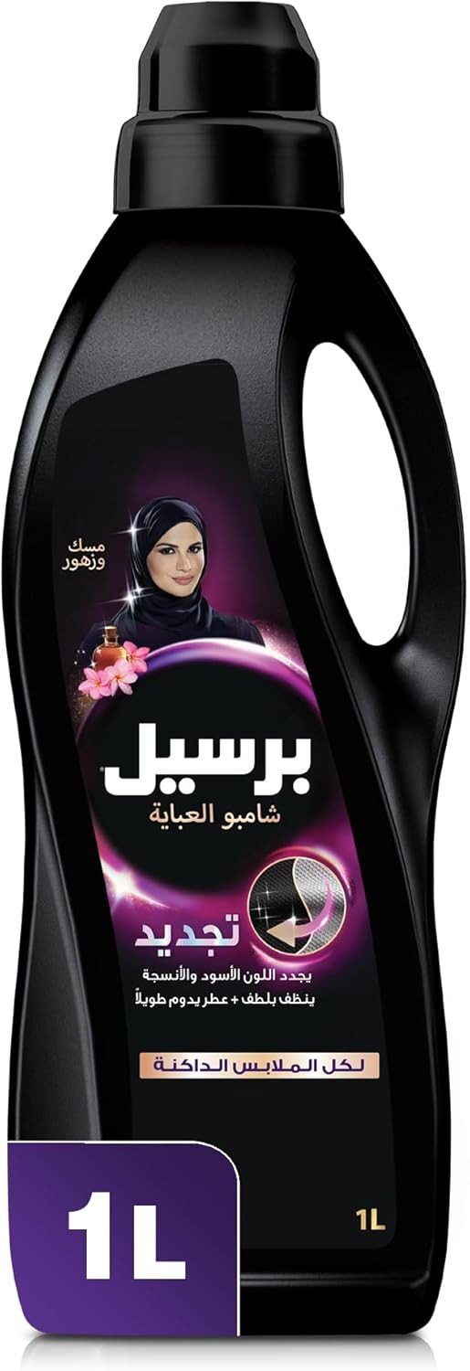 Persil Laundry Detergent Liquid Black Abaya Anaqa 1L is formulated to maintain the black radiance of abayas. Infused with a long-lasting musk and flower fragrance, it ensures a pristine clean with every wash. Ideal for dark clothes, it uses advanced German technology for superior results. Key Features Renews black radiance 3D German technology Suitable for all dark clothes Long-lasting fragrance Anionic Surfactant, Non-Ionic Surfactant, Soap, Fragrance (Anaqa scent variant), plus the Abaya-specific color protection agents.Special formula for Abayas, featuring Black Renew technology and a long-lasting Oud fragrance.Use similar to powder detergents, placing the liquid in the allocated detergent dispenser/drum of the washing machine. Can be used directly on clothes for pre-treatment. For Abaya/Delicates: Suitable for machine wash or hand wash. Use as a liquid detergent/shampoo for best results over powder.Keep out of reach of children. Do not swallow. Avoid contact with eyes. Causes skin irritation. If swallowed, rinse mouth, do NOT induce vomiting, and seek medical attention. If in eyes, rinse cautiously with water for several minutes. Remove contact lenses if present and continue rinsing.