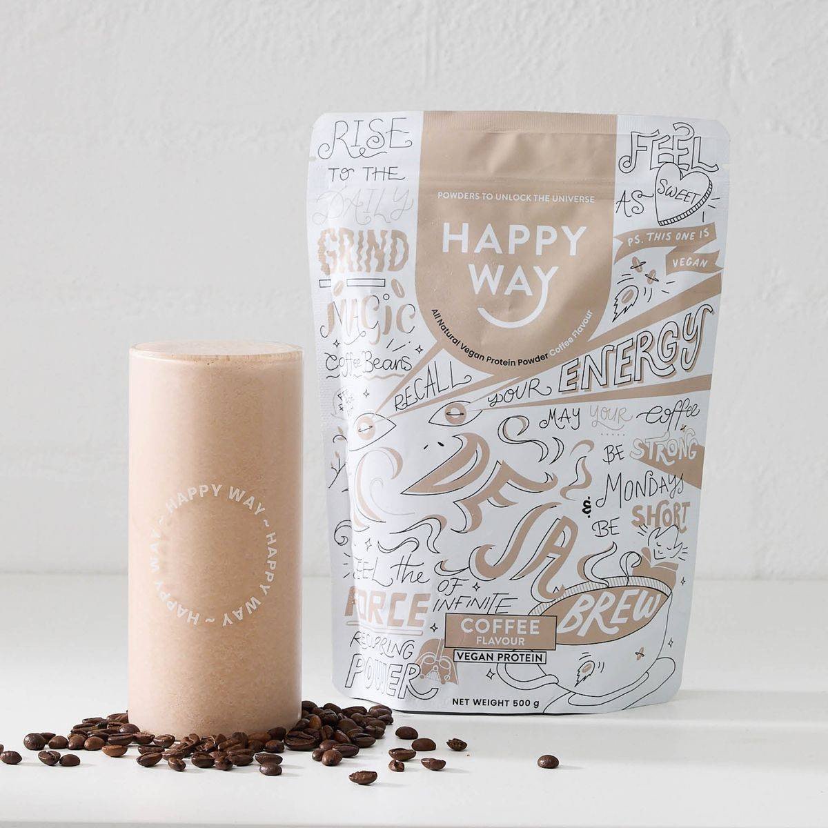Happy Way Vegan Protein Powder Coffee 500g is a nutrient-rich blend designed for an active lifestyle. It provides protein, fiber, and essential minerals, invigorates the senses with coffee flavor, and supports muscle and mind health. Key Features Organic Vegetarian Vegan Dairy Free Gluten Free Plant Protein Blend (80%) (Organic Yellow Pea Protein, Organic Brown Rice Protein), Natural Flavouring, Coconut Powder (Containing Medium Chain Triglycerides, Acacia Gum), Organic Maca Powder, Organic Chia Seeds, Psyllium Husk, Fine Ground Arabica Coffee Bean, Guar Gum, Sweeteners (Steviol Glycoside, Thaumatin), Himalayan Rock Salt.Happy Way Vegan Protein Powder Coffee 500g is a nutrient-rich blend designed for an active lifestyle. It provides protein, fiber, and essential minerals, invigorates the senses with coffee flavor, and supports muscle and mind health.Add 2 Scoops (30G) To A Shaker Cup. Fill With 300Ml Of Chilled Water Or Plant-Based Milk. Shake For 10-15 Seconds Or Blend For Smoother Texture. Enjoy!Consult Healthcare Provider Before Use If You Have Health Conditions. Pregnant Or Breastfeeding Women Should Exercise Caution.
