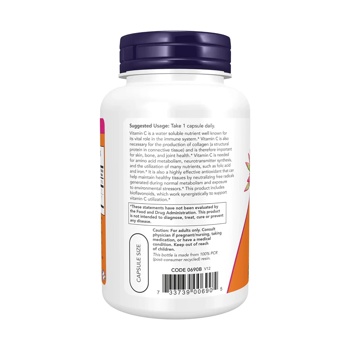 Vitamin C is a water soluble nutrient well known for its vital role in the immune system.* Vitamin C is also necessary for the production of collagen (a structural protein in connective tissue) and is therefore important for skin, bone, and joint health.* Vitamin C is needed for amino acid metabolism, neurotransmitter synthesis, and the utilization of many nutrients, such as folic acid and iron.* It is also a highly effective antioxidant that can help maintain healthy tissues by neutralizing free radicals generated during normal metabolism and exposure to environmental stressors.* This product includes bioflavonoids, which work synergistically to support vitamin C utilization.* Vitamin C is a water soluble nutrient well known for its vital role in the immune system. Vitamin C is also necessary for the production of collagen (a structural protein in connective tissue) and is therefore important for skin, bone, and joint health. Vitamin C is needed for amino acid metabolism, neurotransmitter synthesis, and the utilization of many nutrients, such as folic acid and iron. It is also a highly effective antioxidant that can help maintain healthy tissues by neutralizing free radicals generated during normal metabolism and exposure to environmental stressors. this product includes bioflavonoids, which work synergistically to support vitamin C utilization.Vitamin C is a water soluble nutrient well known for its vital role in the immune system. Vitamin C is also necessary for the production of collagen (a structural protein in connective tissue) and is therefore important for skin, bone, and joint health. Vitamin C is needed for amino acid metabolism, neurotransmitter synthesis, and the utilization of many nutrients, such as folic acid and iron. It is also a highly effective antioxidant that can help maintain healthy tissues by neutralizing free radicals generated during normal metabolism and exposure to environmental stressors. this product includes bioflavonoids, which work synergistically to support vitamin C utilization.Vitamin C (as Ascorbic Acid) 1 g (1,000 mg) , Citrus Bioflavonoid Complex 100 mg, Rutin Powder (Sophora japonica) (Flower Bud) 25 mg. Hypromellose (cellulose capsule), Stearic Acid (vegetable source), Magnesium Stearate (vegetable source) and Silicon Dioxide.