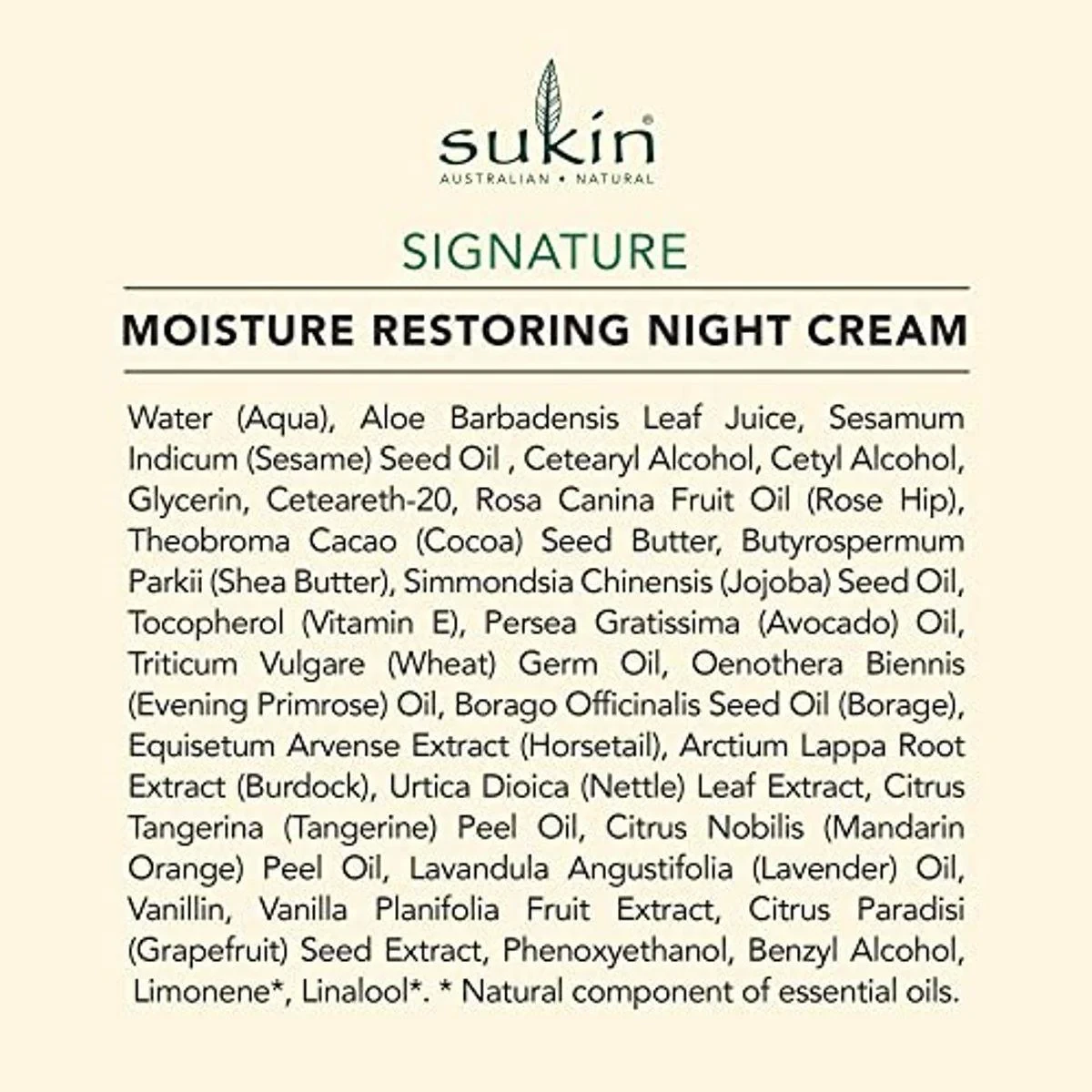 Water (Aqua), Aloe Barbadensis Leaf Juice, Sesamum Indicum (Sesame) Seed Oil, Cetearyl Alcohol, Cetyl Alcohol, Glycerin, Ceteareth-20, Rosa Canina Fruit Oil (Rose Hip), Theobroma Cacao (Cocoa) Seed Butter, Butyrospermum Parkii (Shea Butter), Simmondsia Chinensis (Jojoba) Seed Oil, Tocopherol (Vitamin E), Persea Gratissima (Avocado) Oil, Triticum Vulgare (Wheat) Germ Oil, Oenothera Biennis (Evening Primrose) Oil, Borago Officinalis Seed Oil (Borage), Equisetum Arvense Extract (Horsetail), Arctium Lappa Root Extract (Burdock), Urtica Dioica (Nettle) Leaf Extract, Citrus Tangerina (Tangerine) Peel Oil, Citrus Nobilis (Mandarin Orange) Peel Oil, Lavandula Angustifolia (Lavender) Oil, Vanillin, Vanilla Planifolia Fruit Extract, Citrus Paradisi (Grapefruit) Seed Extract, Phenoxyethanol, Benzyl Alcohol, Limonene*, Linalool*. *Natural Component Of Essential Oils.Australian skincare brand known for natural, vegan, and cruelty-free products.Apply A Pea-Sized Amount Onto Fingertips, Warm Between Hands, And Massage Onto The Face Using Upward, Circular Motions Covering Cheeks, Forehead, Nose, And Chin.For external use only. If irritation occurs, discontinue use.