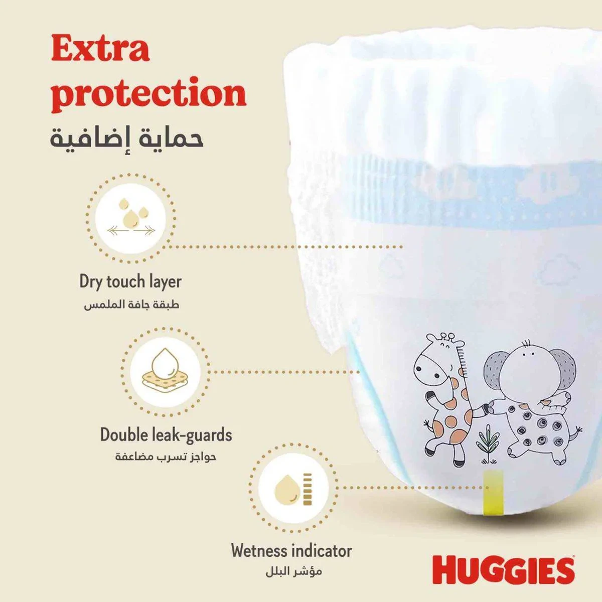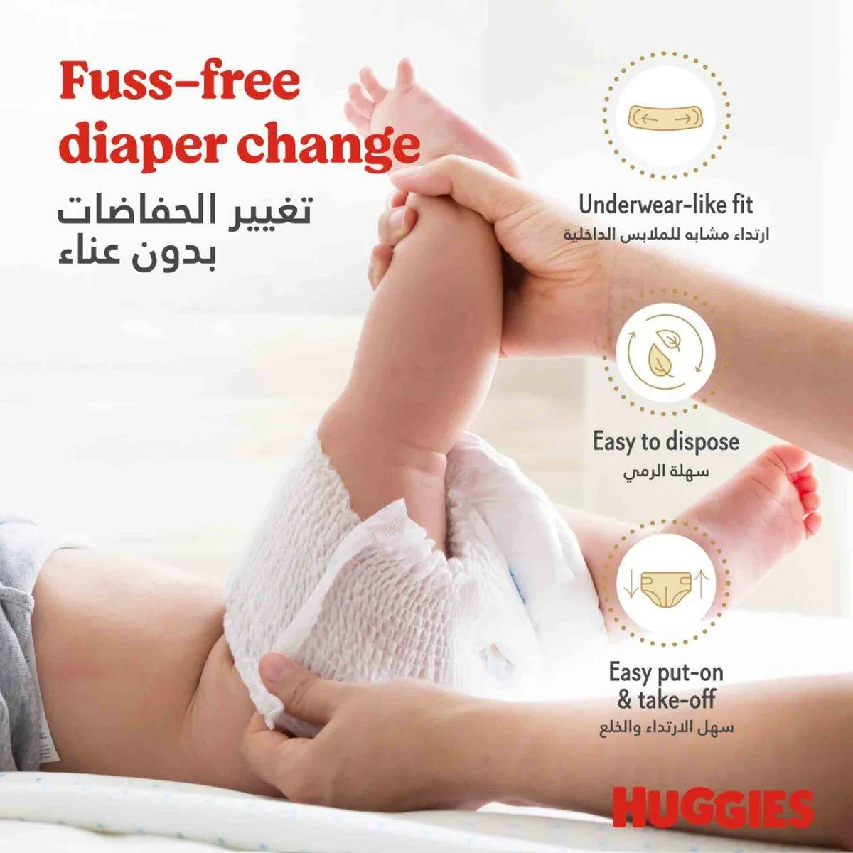 Huggies Extra Care Pants are designed for babies weighing 9-14 kg. These pants feature a soft flexible waistband, a dry touch layer for quick absorption, and breathable materials to keep the skin dry and comfortable. Ideal for day and night use, they offer a snug fit and are free from perfumes, latex, and elemental chlorine. Key Features Soft flexible waistband Dry touch layer absorbs in seconds Micro pores allow skin to breathe Special runny poo pocket prevents leakage Wetness indicator changes color Fasten anywhere tabs for customized fit Umbilical cord cut-out Free from perfumes, latex, and elemental chlorine Materials: Absorbent core (SAP), Non-woven fabrics, 360-degree stretchy waistband.Experts in baby care essentials