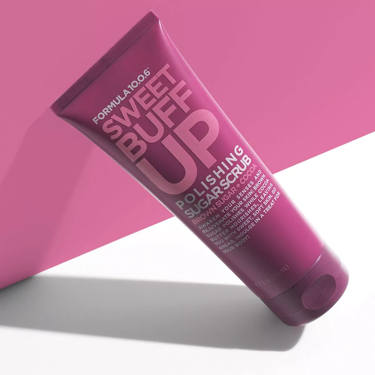 Formula 10.0.6 Sweet Buff Up Polishing Sugar Scrub is designed to awaken your senses and rejuvenate your skin. Brown sugar polishes while cocoa butter nourishes, leaving you with sweet, soft skin. Ideal for treating your body to a luxurious experience. Key Features Polishing sugar scrub Formulated with Brown Sugar Cruelty-free & vegan-friendly Exfoliates and removes rough patches Suitable for dry skin Propylene Glycol, Sucrose, Glycerin, Water, Theobroma Cacao (Cocoa) Seed Butter, Hydrolyzed Jojoba Esters, Polysorbate 80, Acrylates/C10-30 Alkyl Acrylate Copolymer, Phenoxyethanol, Fragrance, Tocopherol, Sodium Hydroxide, Turbinado Brown Sugar.Formula 10.0.6 offers a complete line of body care products for clean and soft skin, trusted since 1933.Squeeze into the palm of your hand and gently massage onto wet skin in a circular motion. Rinse thoroughly, dry and apply your favorite Formula 10.0.6 body lotion, butter or oil. Use 1 or 2 times a week as needed for smooth skin.Do not use on irritated or open skin. Use with care. For external use only. Keep out of eyes. Discontinue use if irritation or rash develops.