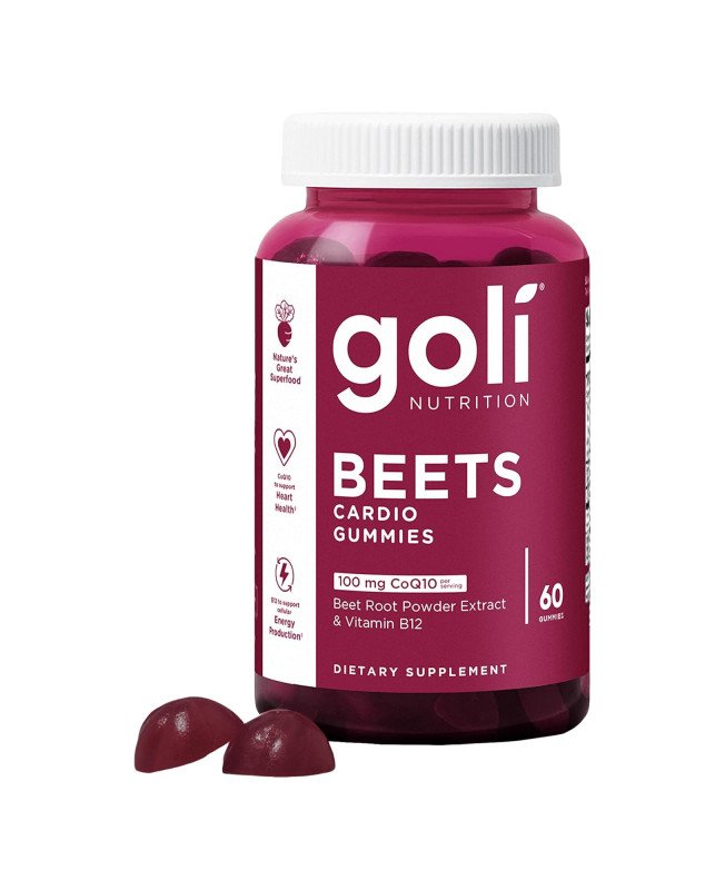 Goli Nutrition Beets Cardio Gummies are a dietary supplement designed to support cardiovascular health. Made with CoQ10 and Beet Root Extract, these vegan gummies also contain Vitamin B12 for cellular energy. They are gluten-free, non-GMO, and gelatin-free, making them suitable for a variety of dietary needs. Enjoy the benefits of nature's great superfood in a convenient gummy form. Supports cardiovascular health Contains CoQ10 and Beet Root Extract Vegan, Non-GMO, Gluten-free, Gelatin-free Includes Vitamin B12 for energy production Made in the USA Tapioca Syrup, Cane Sugar, Water, Natural Flavors, Pectin, Malic Acid, Sodium Citrate, Citric Acid, Sunflower Lecithin, Beet Root Powder Extract, CoQ10, Vitamin B12.Innovative nutrition company known for vegan, gluten-free supplements.Take 2 gummies, once daily. Chew thoroughly.Consult a physician prior to use if pregnant or nursing, taking any medications, or have any medical conditions.
