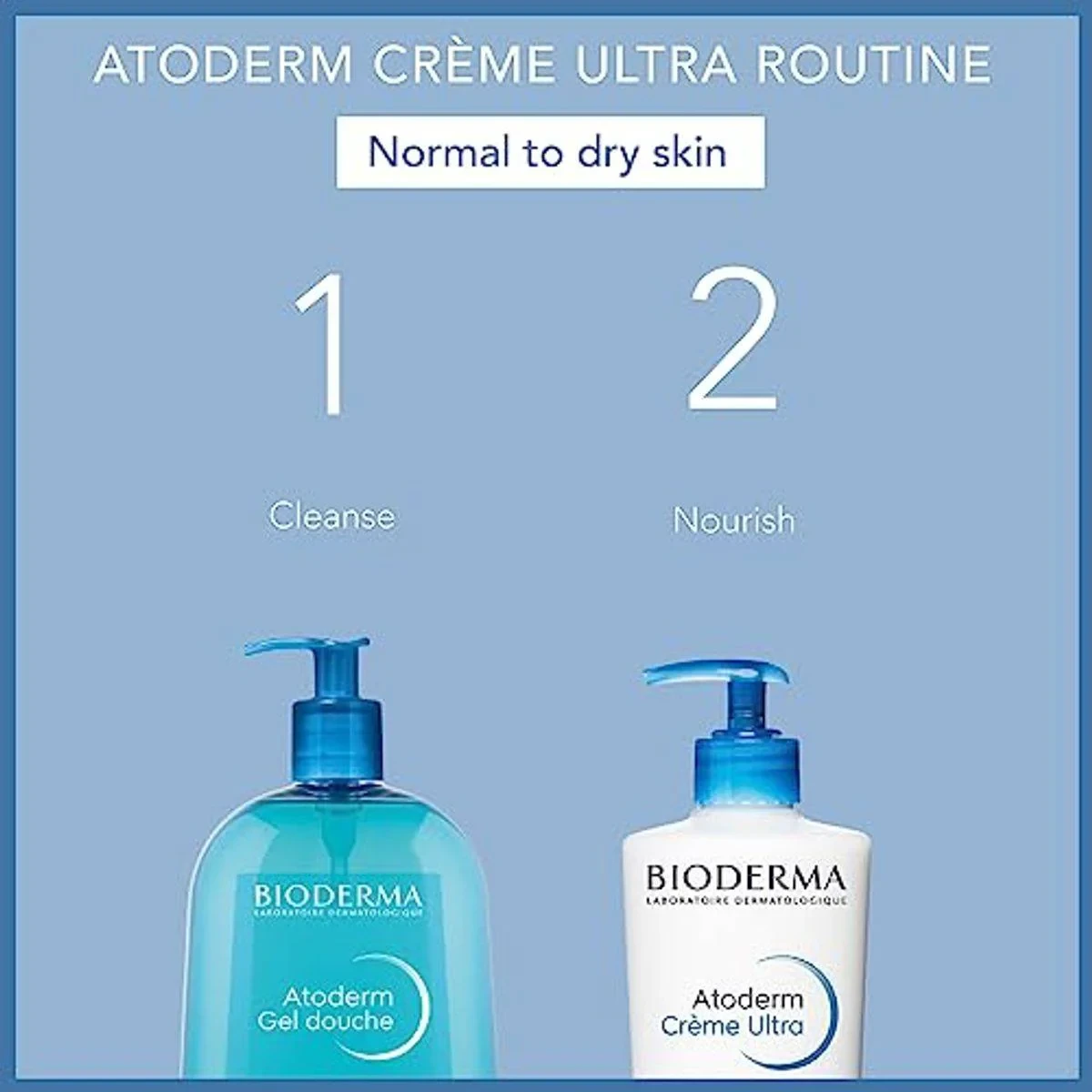 Aqua/Water, Paraffinum Liquidum, Glycerin, Cetearyl Isononanoate, Glyceryl Stearate, Peg-100 Stearate, Myreth-3 Myristate, Steareth-21, Cyclopentasiloxane, Pentylene Glycol, Cyclohexasiloxane, Acrylates/C10-30 Alkyl Acrylate Crosspolymer, Caprylyl Glycol, Cetyl Alcohol, Disodium Edta, Palmitic Acid, Stearic Acid, Xylitol, Mannitol, Rhamnose, Sodium Hydroxide, Sodium Dehydroacetate, Xylitylglucoside, Anhydroxylitol, Niacinamide, Glucose, Fructooligosaccharides, Caprylic/Capric Triglyceride, Laminaria Ochroleuca Extract.Bioderma: Dermatological skincare brand known for innovative solutions for sensitive skin.Apply Atoderm Crème Ultra On The Whole Body After Showering With An Atoderm Hygiene Product.For external use only. Discontinue use if irritation occurs.