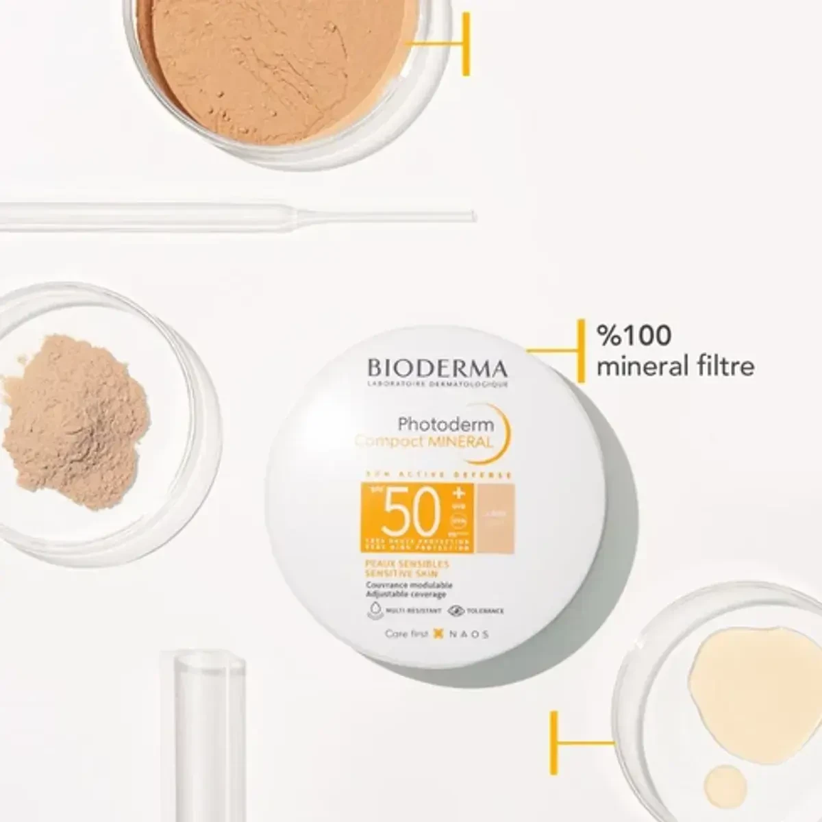 Bioderma Photoderm Compact SPF50+ is a mineral sunscreen offering very high protection against UVA/UVB rays. It provides a natural, even coverage and is suitable for sensitive skin. The compact is easy to apply and touch up, leaving the skin mattified and protected. Ideal for daily use, it is perfume-free and water-resistant. Key Features High protection against UVA/UVB rays Natural and even coverage of imperfections Minimizes shine and controls oiliness Hypoallergenic and water-resistant Mattifying effect for 8 hours Perfume-free and tinted Suitable for normal, dry, and sensitive skin 100% mineral filter Glycerin, Water.Bioderma: Dermatological skincare solutions, known for innovative sun protection and sensitive skin care.Apply evenly and generously to the face and neck with the sponge before sun exposure. Reapply every 2 hours, especially after swimming, sports, and sweating.For external use only.
