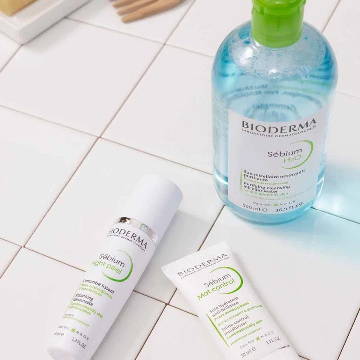 Bioderma Sebium Night Peel is a smoothing concentrate gel designed for combination to oily skin. It contains 15% glycolic acid to gently exfoliate and renew the skin, reducing blemishes and revealing radiance. The Fluidactiv patent helps regulate sebum quality, preventing clogged pores. Ideal for evening use, it leaves skin feeling smooth and clear. Key Features