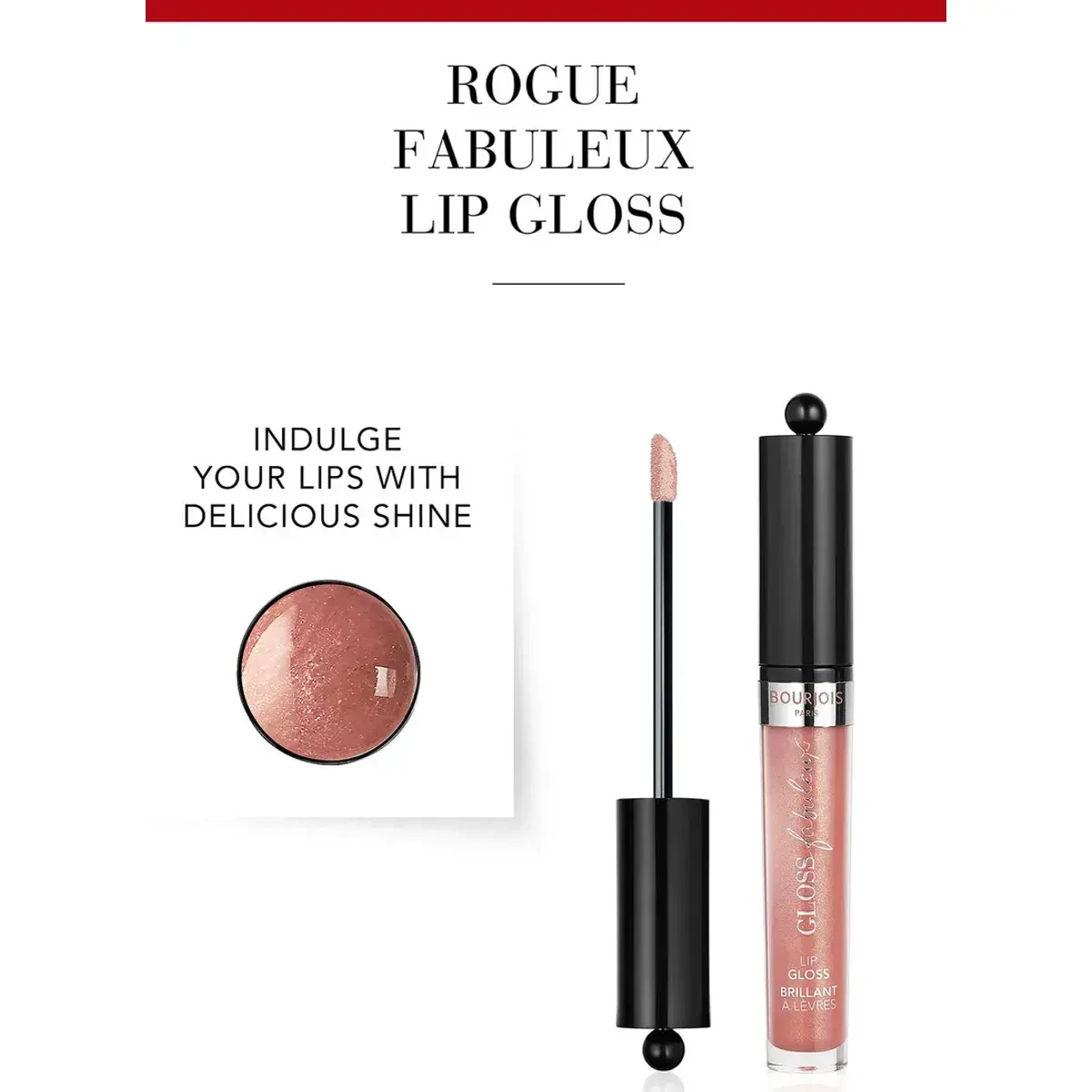 Bourjois Gloss Fabuleux Lip Gloss offers a non-sticky, ultra-shiny finish. Enriched with Argan oil and Vitamin E, it provides 24-hour hydration and comfort. Ideal for a luminous look. Features Ultra-shiny finish Non-sticky formula Enriched with Argan Oil and Vitamin E 24-hour hydration Precise foam applicator Polybutene, Hydrogenated Polyisobutene, Mineral Oil, Ethylhexyl Palmitate, Argania Spinosa Kernel Oil, Vitamin E.Bourjois: Parisian beauty brand known for innovative and affordable makeup products.Apply Directly To Lips Using The Foam Applicator For A Glossy Finish.For external use only. Discontinue use if irritation occurs.