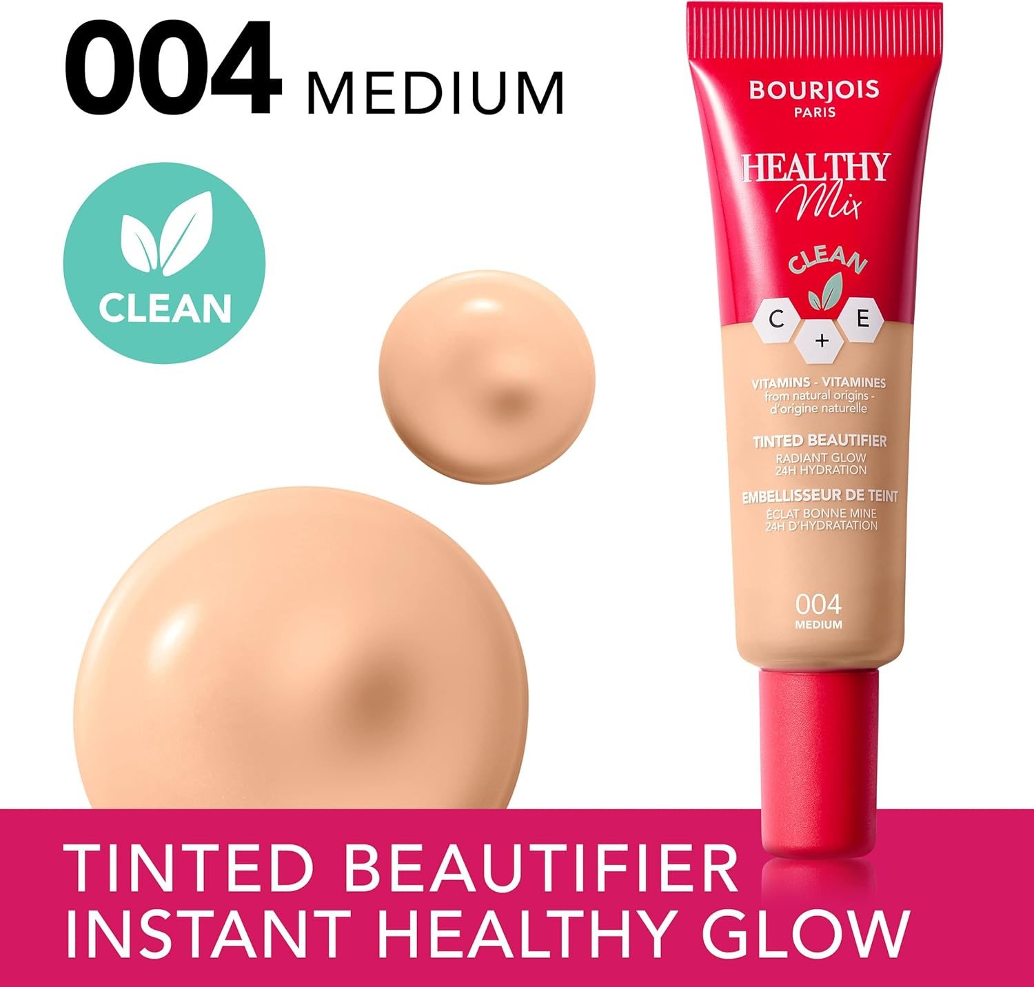 Bourjois Healthy Mix Clean Tinted Beautifier offers light to medium coverage with a fresh, natural look. Enriched with coconut oil and vitamins C and E, it hydrates and improves skin quality in 2 weeks. Ideal for all skin types, it provides a radiant glow and is non-comedogenic. Key Features