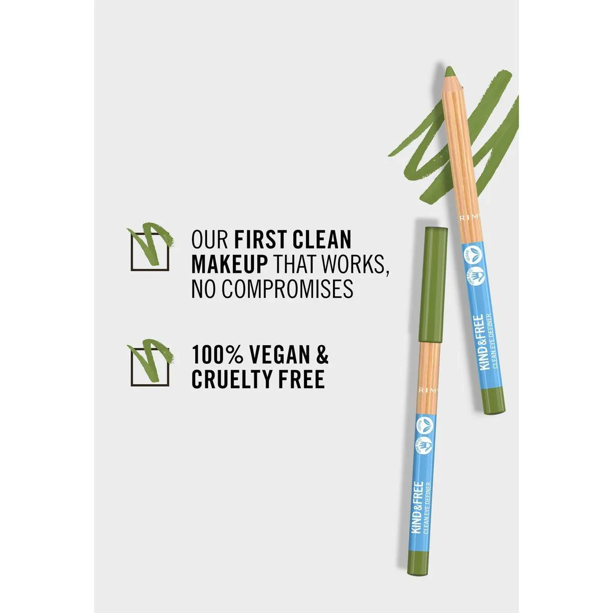 The Rimmel Kind & Free Eyeliner in Soft Orchard Green offers a creamy, buttery texture for effortless application. This vegan and cruelty-free eyeliner defines eyes with precision and is suitable for sensitive eyes. Perfect for creating bold or subtle looks, it glides smoothly along the lash line. Key Features Ultra creamy & buttery texture Vegan & cruelty-free Glides around eyes effortlessly Clean eye definer Key Ingredients: Waxes, Silicone polymers, Pigments (Iron Oxides/Dyes), Emollients.Rimmel: Iconic British brand known for innovative, affordable makeup products.Apply Along The Lash Line For Definition. Suitable For Use On Waterline.For external use only. Avoid direct contact with eyes; discontinue use if irritation occurs. Do not use if eye is injured, infected, or irritated.