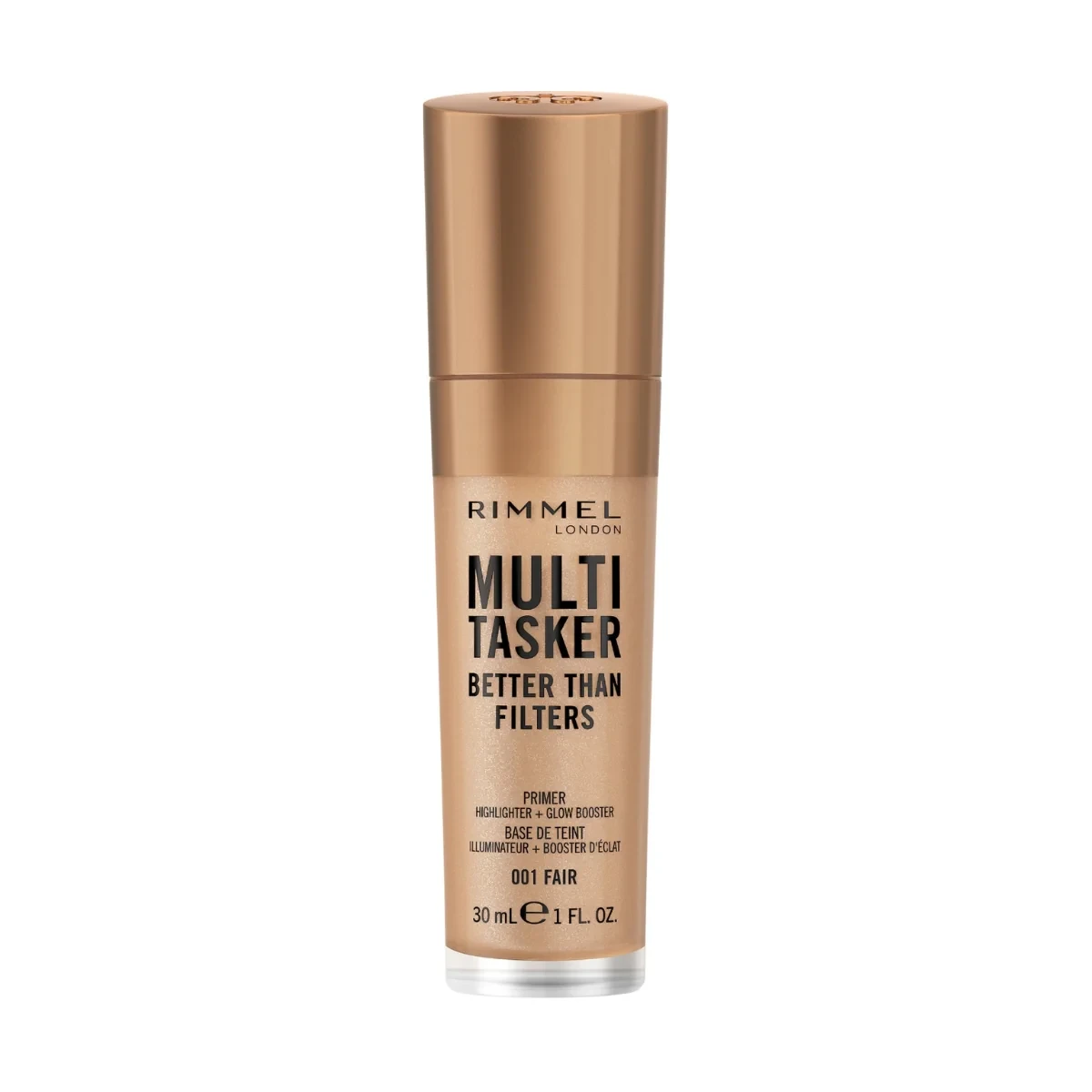 span Rimmel Better Than Filters Multi-Tasker primer, highlighter + glow booster helps put the spotlight on your best features. Wear it your way, for the ultimate skin glow available in 12 skin-adapting shades. Enhance your natural glow and say goodbye to social media filters!   /span ul All in 1 highlighter, primer and glow booster; Mixed, underneath, or above your base! Lightweight, blendable formula is infused with skin-loving ingredients like natural biopeptides and Vitamin C; Anti-ageing and antioxidant benefits in just 4 weeks! Light-reflecting primer pigments give the skin a perfectly lit and smooth glow; Available in 12 skin-adapting shades; Cruelty-free; Vegan; /ul Key Ingredients: Water, Glycerin, Propylene Glycol, Dimethicone, Polymethylsilsesquioxane, Dimethicone/Vinyl Dimethicone Crosspolymer, Polysorbate 60, Tocopheryl Acetate, Mica, Colorants.Rimmel Multi Tasker is a versatile product line. This primer is designed to smooth skin and add a radiant filter effect.Apply 1-2 pumps onto clean skin. Wear alone for a perfected glow or as a base before foundation.For external use only. Discontinue use if irritation occurs. Avoid contact with eyes.