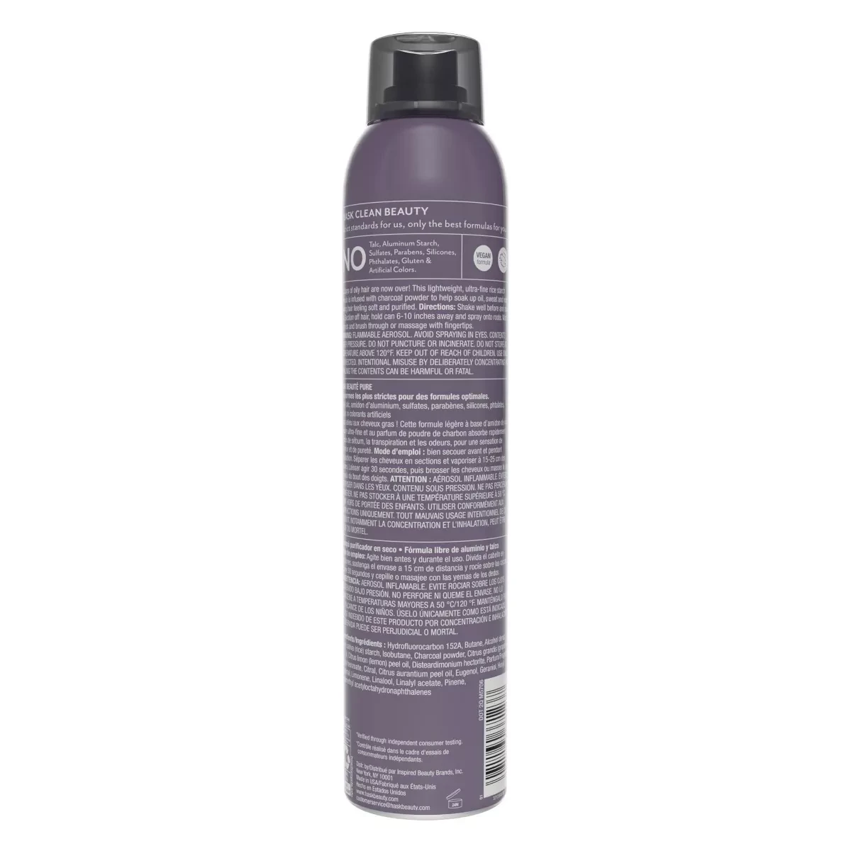 Hask Dry Shampoo Charcoal Purifying is a lightweight formula infused with charcoal powder to help soak up oil and sweat, leaving hair feeling soft and purified. Ideal for refreshing hair between washes. Features Charcoal purifying formula Free of aluminum and talc No sulfates or parabens Vegan and cruelty-free Lightweight and ultra-fine rice starch Absorbs oil, sweat, and odor Leaves hair feeling soft and purified Hydrofluorocarbon 152A, Butane, Alcohol Denat., Citrus Limon (Lemon) Peel Oil, Disteardimonium Hectorite, Parfum, Oryza Sativa (Rice) Starch, Isobutane, Charcoal Powder, Citrus Grandis (Grapefruit) Peel Oil, Limonene, Linalool, Linalyl Acetate, Pinene, Citral, Citrus Aurantium Dulcis (Orange) Peel Oil, Eugenol, Geranial, Acetyloctahydronaphthalenes.Hask is renowned for its clean beauty products, offering sulfate and paraben-free hair care solutions.Shake well before use. Hold can 6-10 inches away and spray onto roots. Brush through or massage with fingertips.FLAMMABLE AEROSOL. AVOID SPRAYING IN EYES, CONTENTS UNDER PRESSURE. DO NOT PUNCTURE OR INCINERATE. DO NOT STORE AT TEMPERATURES ABOVE 120°F. KEEP OUT OF REACH OF CHILDREN. USE ONLY AS DIRECTED. INTENTIONAL MISUSE BY DELIBERATELY CONCENTRATING AND INHALING THE CONTENTS CAN BE HARMFUL OR FATAL.