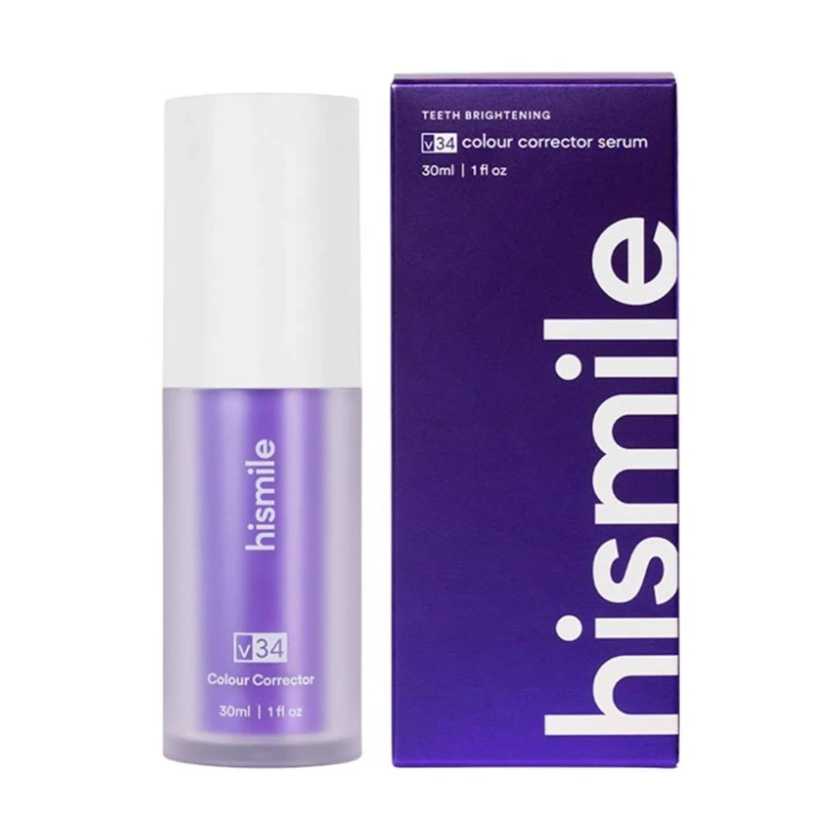 Hismile V34 Colour Corrector Serum offers a non-invasive way to brighten your smile using color-correcting technology. It neutralizes yellow tones, enhancing natural whiteness without harsh treatments. Safe for daily use, it provides an instant whitening boost and is ideal for a quick smile refresh.   Instantly cancels yellow undertones Non-invasive application Safe for daily use Peroxide-free formula Brightens in 30 seconds Easy application like regular toothpaste Suitable for adults     Glycerin, Aqua/Water, Sorbitol, Hydrated Silica, Xylitol, Polysorbate 80, Cellulose Gum, Mentha Piperita (Peppermint) Oil, Phenoxyethanol, Sucralose, Tetrasodium Pyrophosphate, CI17200/D&C Red No. 33, CI42090/FD&C Blue No.1, Ethylhexylglycerin.Innovative oral care brand specializing in peroxide-free teeth whitening solutions.Apply 2 pumps to a soft bristle toothbrush and gently brush in circular motion for 2 minutes. Expel after use, do not swallow. Rinse excess formula from mouth.For external use only. Do not swallow. Keep out of reach of children. Discontinue use if irritation occurs.