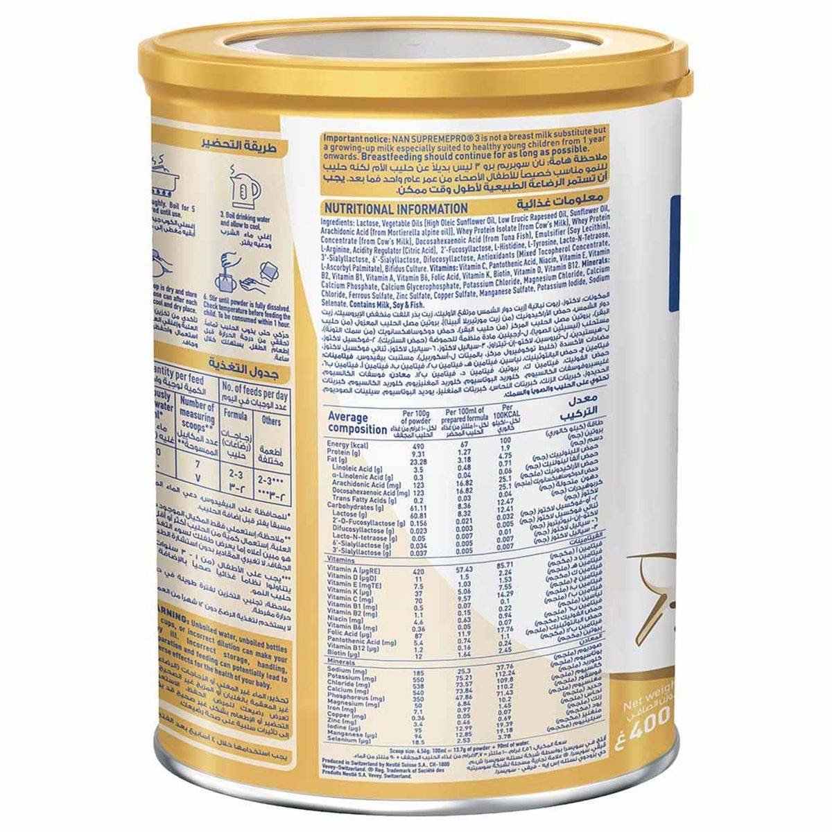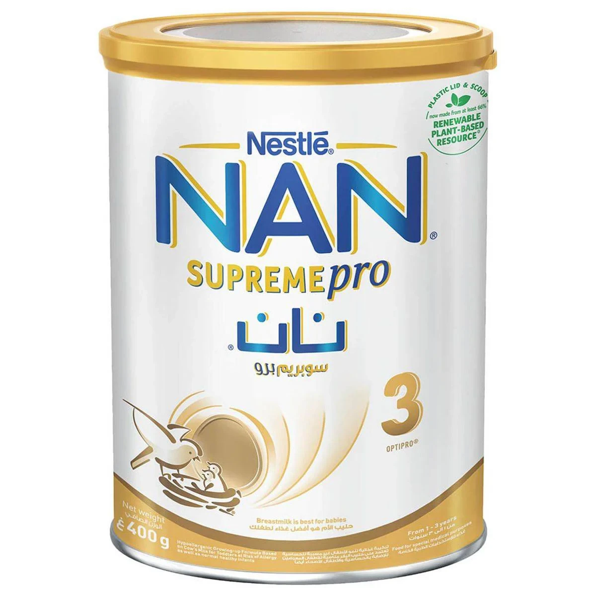 NAN Supreme PRO 3 is a growing-up milk designed for toddlers aged 1-3 years. It supports healthy development and is suitable for allergy-prone infants. The formula contains OptiPro, a special protein blend, and is environmentally friendly with renewable packaging. Key Features