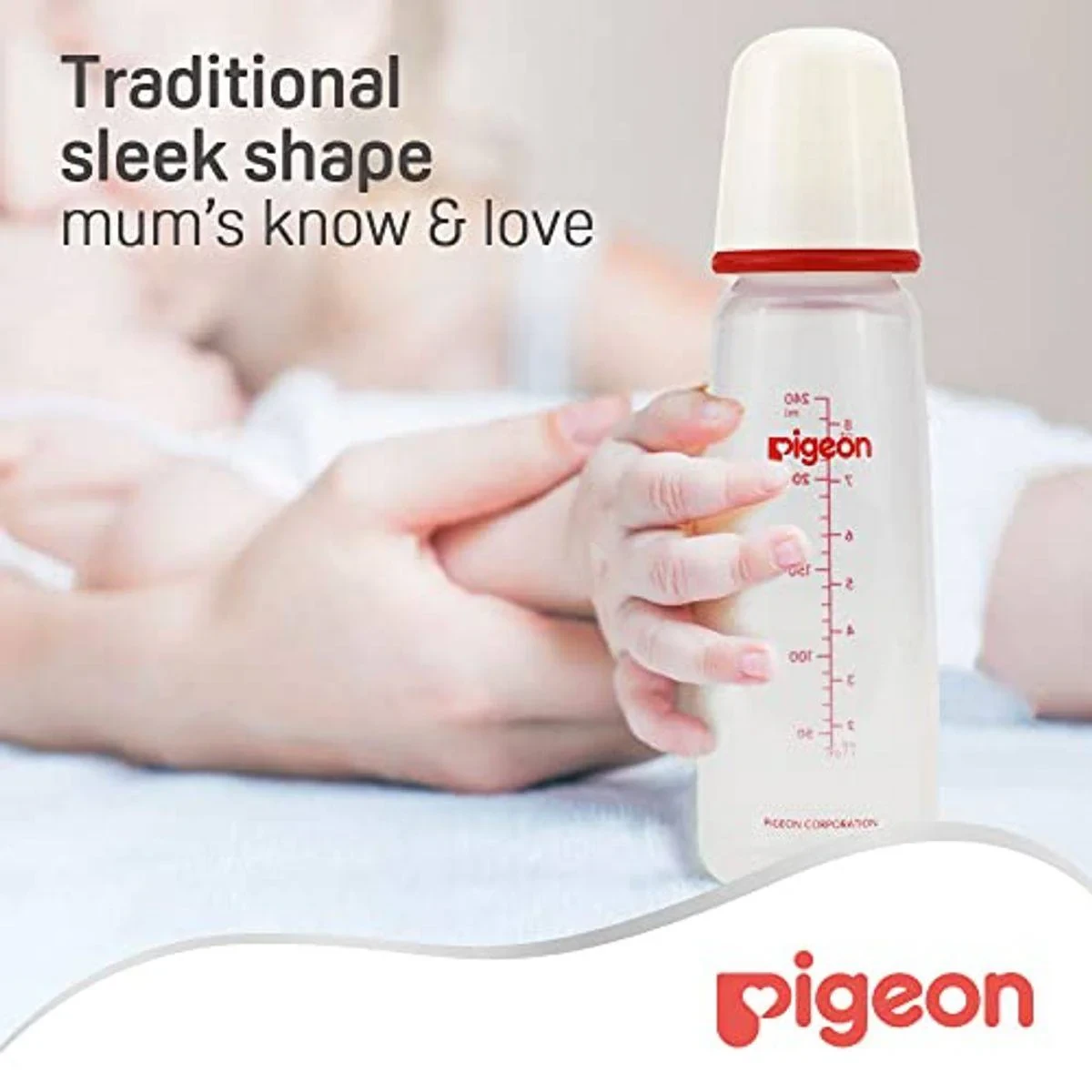 The Pigeon Plastic Feeding Bottle is designed to support your baby’s natural feeding motion. It features an ultra-soft silicone nipple and an anti-colic system to prevent gas and swallowed air. The bottle is BPA-free and easy to clean, making it a reliable choice for busy parents. Key Features Traditional sleek shape Controlled milk flow Anti-Colic System 100% premium silicone BPA free Microwave and sterilizer-safe Lightweight and durable Air Ventilation System Key Materials: Bottle: Polypropylene (PP) plastic (BPA/BPS Free); Nipple: Silicone.Experts in baby care essentials and innovative feeding solutions.Use To Feed Liquids To Infants, Ensuring Easy And Comfortable Feeding.Bpa Free.
