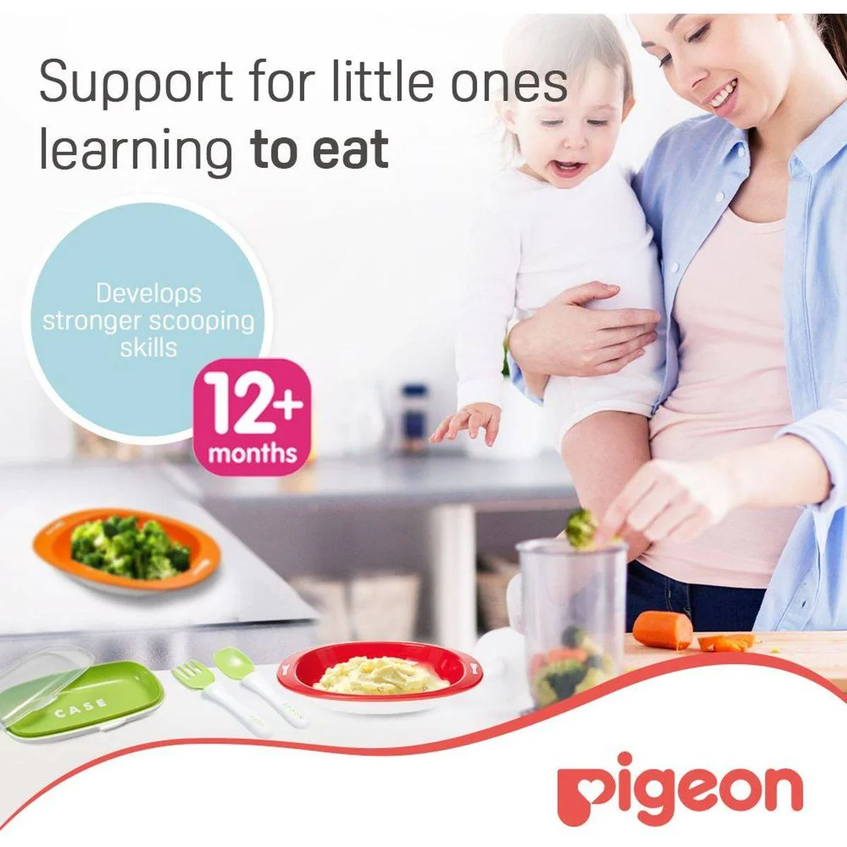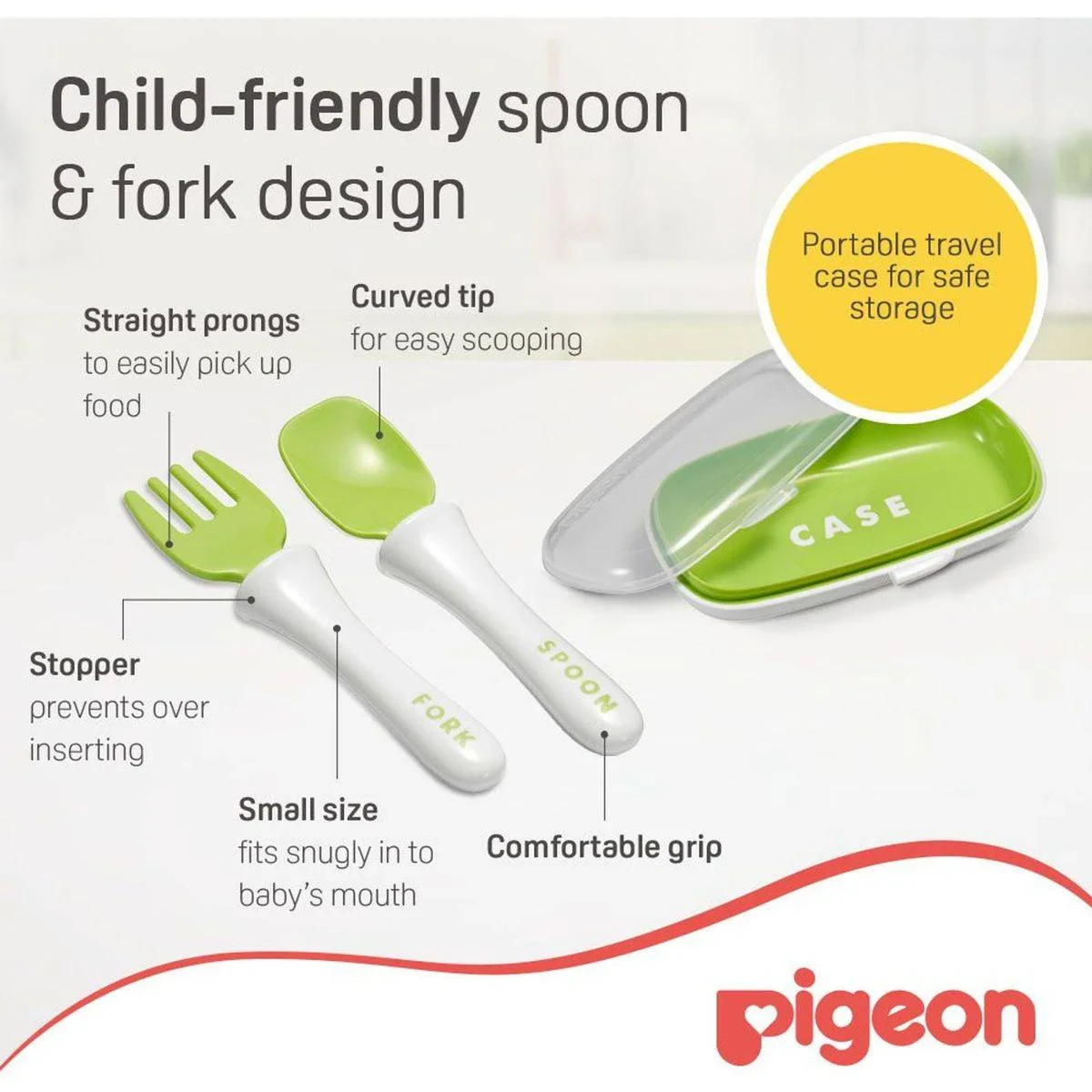 The Pigeon Do It Myself Stage 2 Cutlery Set is designed for toddlers 12+ months, promoting independent eating with child-friendly utensils. BPA-free and safe for boiling and microwaving. Key Features Child-friendly spoon and fork design Portable travel case Curved tip for easy scooping Stopper prevents over-insertion Small size fits snugly into baby's mouth Comfortable grip Non-slip base prevents tipping over BPA-free material Key Materials: Spoon and fork: Food grade Polypropylene (PP) or Stainless Steel; Handles: Plastic/PP.Experts in baby care essentials and innovative feeding solutions.Place The Dish Securely On A Flat Surface To Activate The Non-Slip Base.Always Use Under Adult’S Supervision. Always Check Food Temperature Before Feeding.
