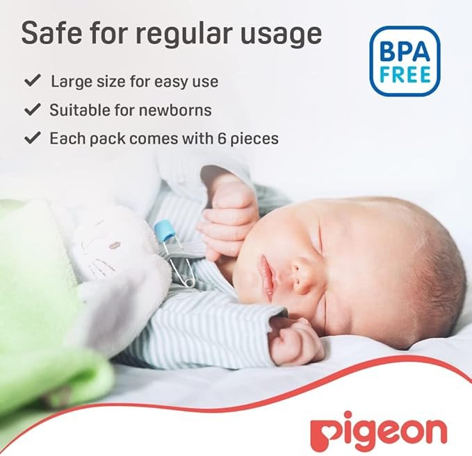 Pigeon Safety Pins are made from durable stainless steel, featuring a secure locking mechanism and smooth tips to protect delicate fabrics and skin. Ideal for fastening baby clothes and nappies. Features Secure locking mechanism Durable stainless steel Smooth rounded tips Large size for thicker fabrics Assorted colors Not SpecifiedExperts in baby care essentials
