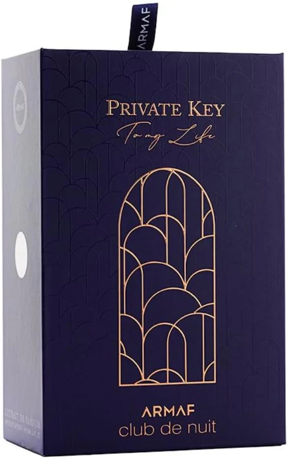 Private Key To My Life by Armaf is a fragrance for women and men. This is a new fragrance. Private Key To My Life was launched in 2023 Top notes are Grapefruit, Pineapple, Tangerine, Bergamot, Orange, Melon, Lemon, Lime, Plum, Black Pepper and Pink Pepper Middle notes are Lily of the Valley, White Flowers, Geranium, Jasmine, Freesia, Rose and Magnolia Base notes are Patchouli, Leather, Amber, White Musk and Woodsy Notes Try Also: Private Key To My Dreams, Black, Private Key To My Life, Red, Private Key To My Love, Blue, Private Key To My Success, Grey