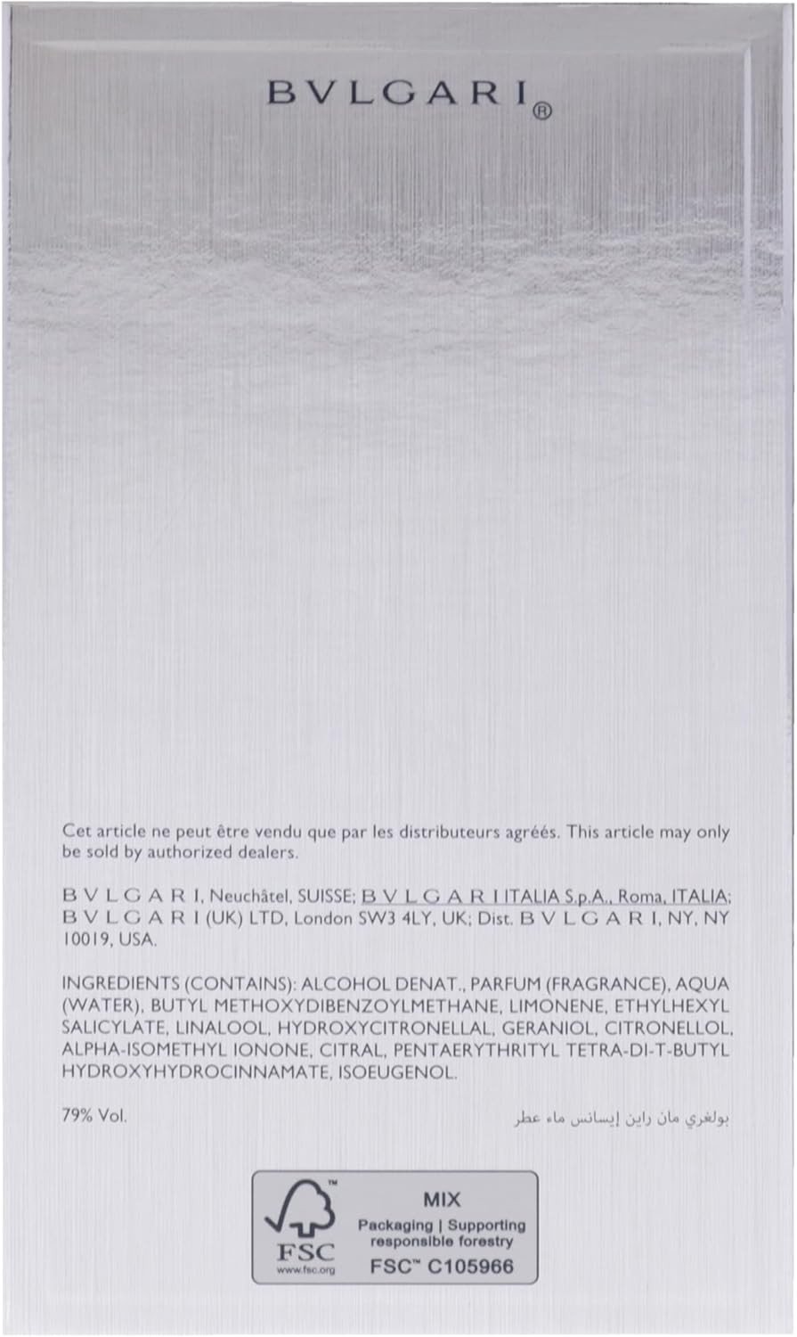 Bvlgari Man Rain Essence EDP is a luxurious fragrance capturing the essence of nature after rain. With notes of green tea, orange, musk, and white lotus, it offers a refreshing and sophisticated scent. Ideal for the modern man who appreciates elegance and versatility. Key Features Floral Woody Musk fragrance Top notes of Green Tea and Orange Heart notes of Musk and White Lotus Base notes of Amber and Guaiac Wood Designed for men Launched in 2023 Suitable for everyday use Versatile fragrance for special events Alcohol Denat., Parfum (Fragrance), Aqua (Water), Butyl Methoxydibenzoylmethane, Limonene, Ethylhexyl Salicylate, Linalool, Hydroxycitronellal, Geraniol, Citronellol, Alpha-Isomethyl Ionone, Citral, Pentaerythrityl Tetra-Di-T-Butyl Hydroxyhydrocinnamate, Isoeugenol.Bvlgari, a renowned luxury brand, excels in crafting exquisite fragrances and jewelry, embodying sophistication and elegance.Not SpecifiedFor external use only.