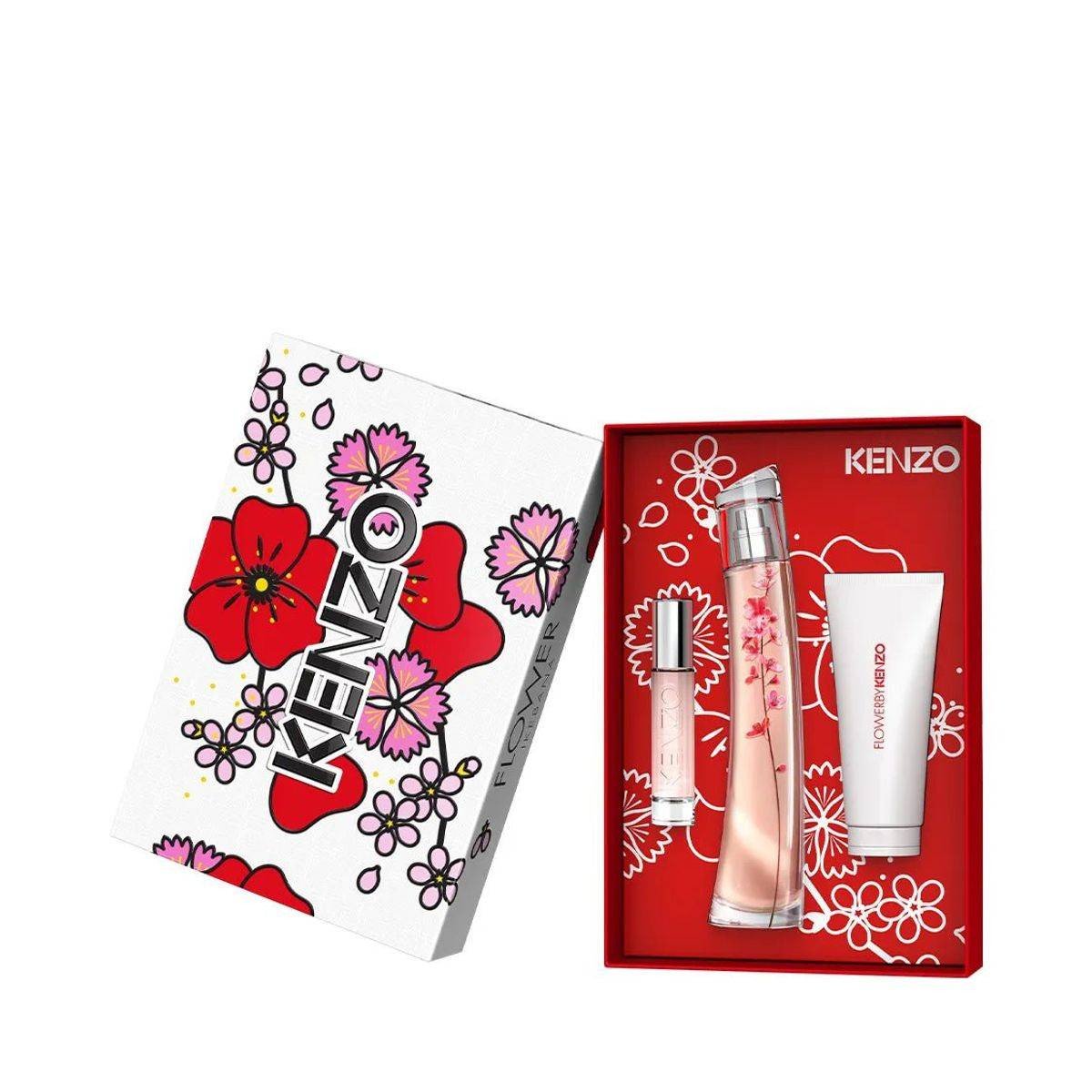 Kenzo Flower Ikebana By Kenzo (W) Set EDP 75ml + EDP 10ml Reusable Travel Spray + Body Milk 75ml