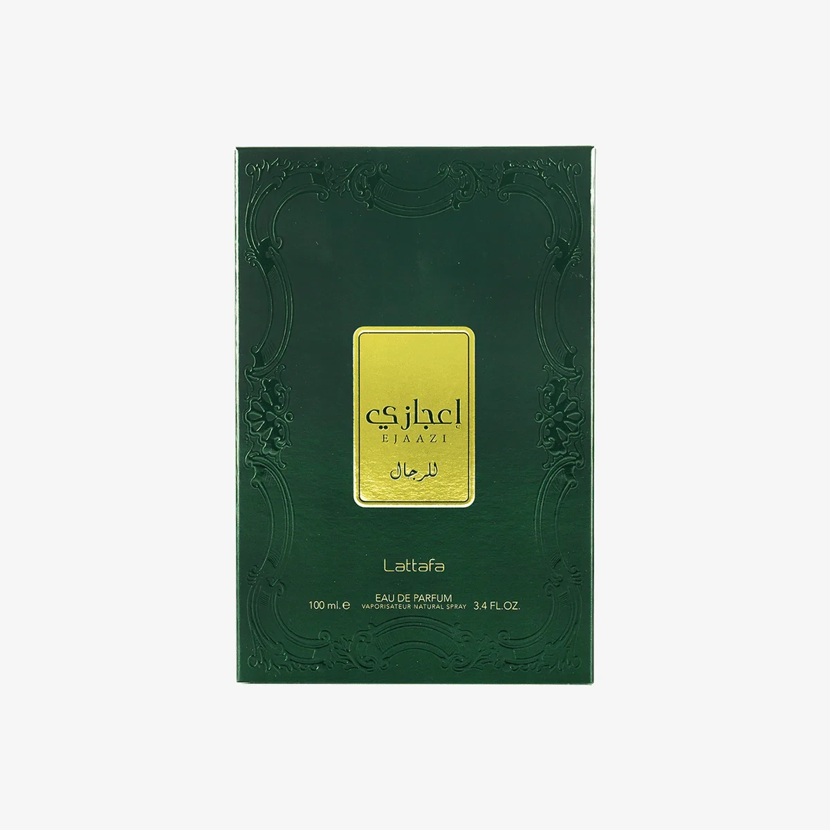 Lattafa Ejaazi is a unisex Eau de Parfum featuring a blend of citrus, amber, and woodsy notes. Ideal for those seeking a versatile and long-lasting fragrance. Key Features Unisex fragrance Amber and woody notes Long-lasting scent Suitable for cool weather Alcohol Denat., Parfum, Water, Limonene, Linalool.Lattafa: Renowned for crafting captivating unisex fragrances blending oriental and modern notes.Apply To Pulse Points Such As Wrists, Neck, And Behind Ears.Flammable. For external use only. Keep away from heat, sparks, and open flame.