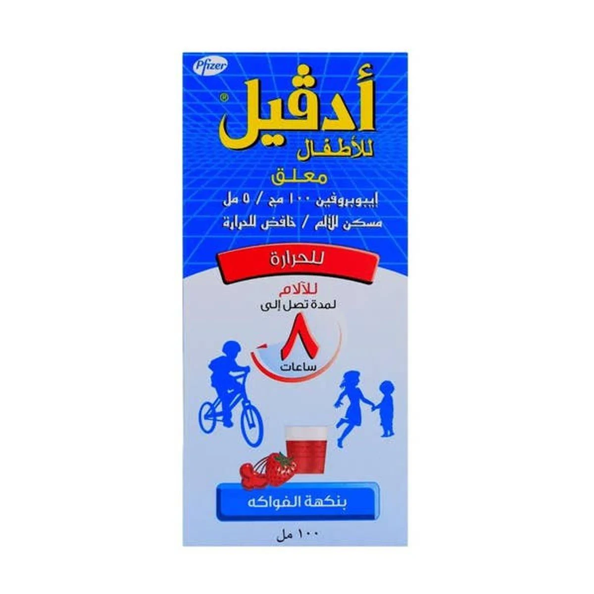 Advil Children Suspension Bubblegum Flavour is an ibuprofen oral suspension designed for children ages 2-11. It provides up to 8 hours of relief from fever and minor aches and pains. The bubblegum flavor makes it easy for children to take. Alcohol-free and suitable for various common ailments like colds, flu, and sore throats. Key Features Relieves pain and fever due to colds or flu Lasts up to 8 hours Suitable for ages 2-11 years Bubble gum flavor Alcohol-free formulation Ibuprofen (NSAID) (100 mg), Carboxymethylcellulose Sodium, Citric Acid, Monohydrate, Edetate Disodium, FD&C Red No. 40, Glycerin, Microcrystalline Cellulose, Natural and Artificial Flavor, Polysorbate 80, Propylene Glycol, Purified Water, Sodium Benzoate, Sorbitol Solution, Sucrose, Xanthan Gum.Advil: Trusted for effective pain relief and fever reduction.Shake well before using. Doses may be repeated every 6-8 hours while symptoms persist, up to 3 doses a day, or as directed by a doctor.Keep out of reach of children. This package contains enough medicine to seriously harm a child.