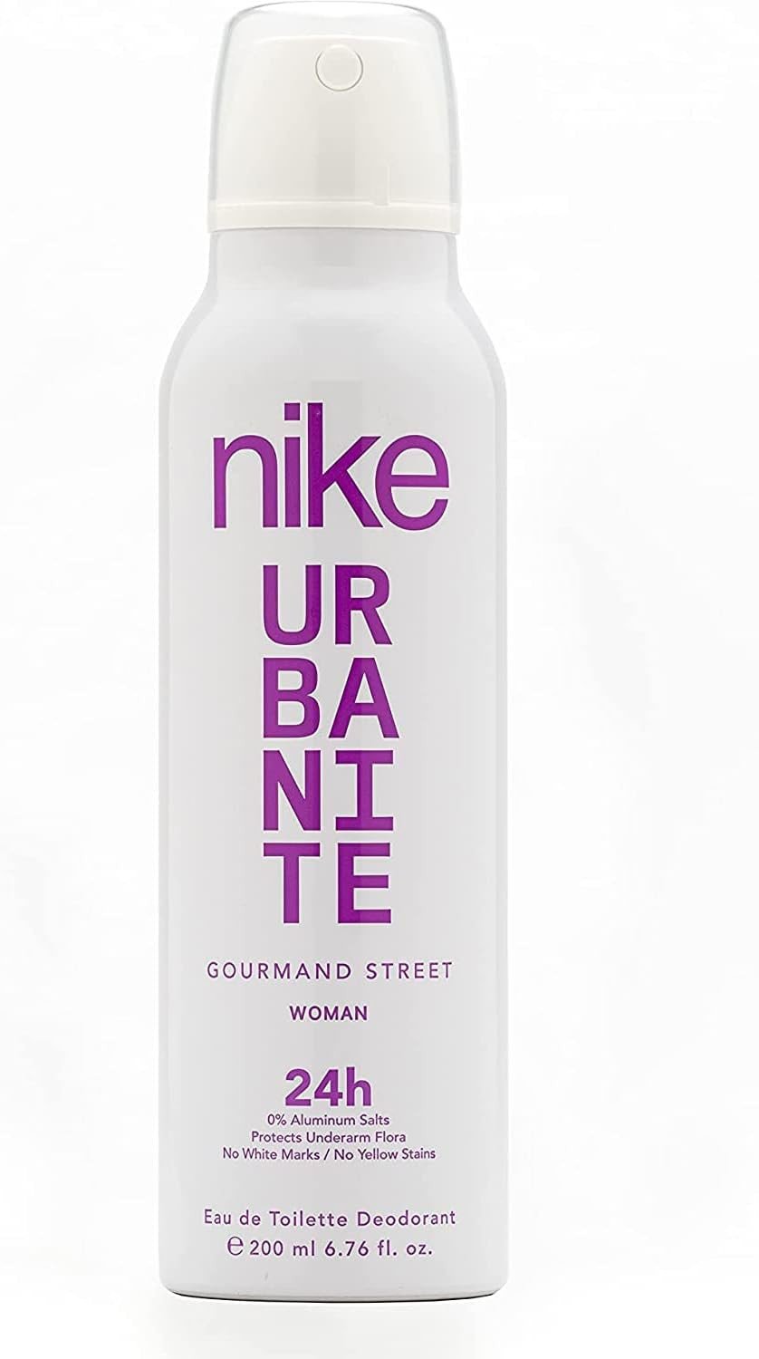 Isobutane, Fragrance, 2-Methyl Alcohol, Propane, Denat. Parfum, Isopropyl Myristate, 5-Cyclohexylpentanol, Butane, Benzyl Salicylate, Linalool, Limonene, Hexyl Cinnamal, Alpha-Isomethyl Ionone, Coumarin, Hydroxycitronellal, Citronellol, Citral.Nike Deodorant Spray Gourmand Street for Woman offers lasting freshness and confidence with its light, fast-absorbing formula. It effectively protects against unwanted odor and reduces perspiration, leaving an attractive, feminine scent. Ideal for the modern woman, this deodorant is perfect for daily use.Spray A Suitable Amount On Your Underarms After Showering And Drying Your Skin. Leave The Deodorant To Dry Before Getting Dressed. Can Be Used Daily Or As Needed.Do Not Spray On Irritated Skin Or Open Wounds.